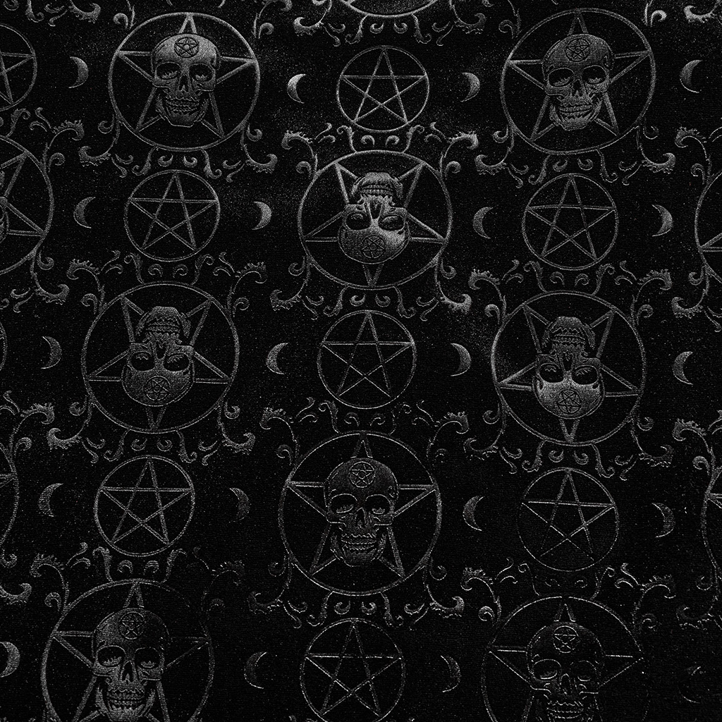 1.Made of elastic pentacle skull embossed velvet and lace lining 2.Unique irregular pointed hem with flexible pentacle tassel.. 3.Delicate buckle in the front.