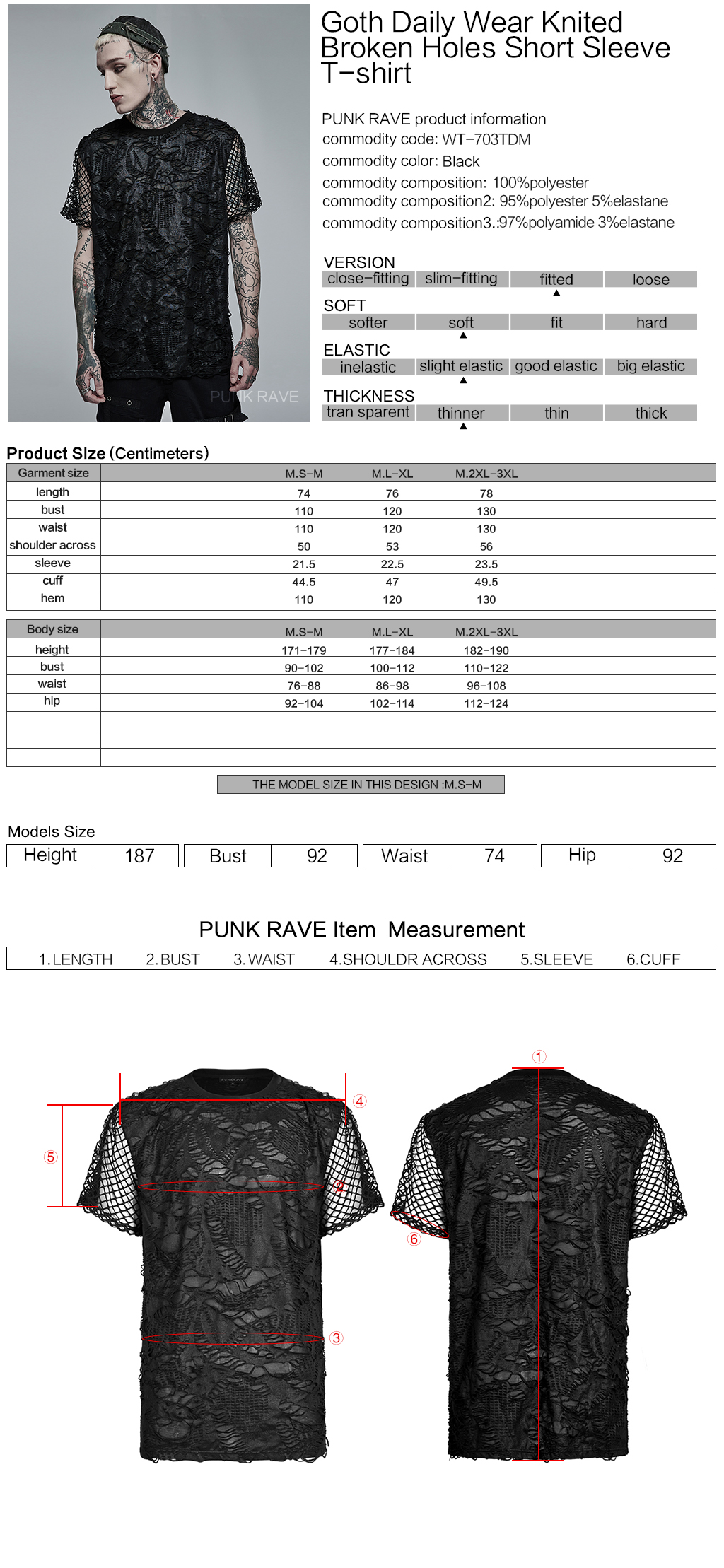 Goth Daily Wear Knited Broken Holes Short Sleeve T-shirt WT-703TDM