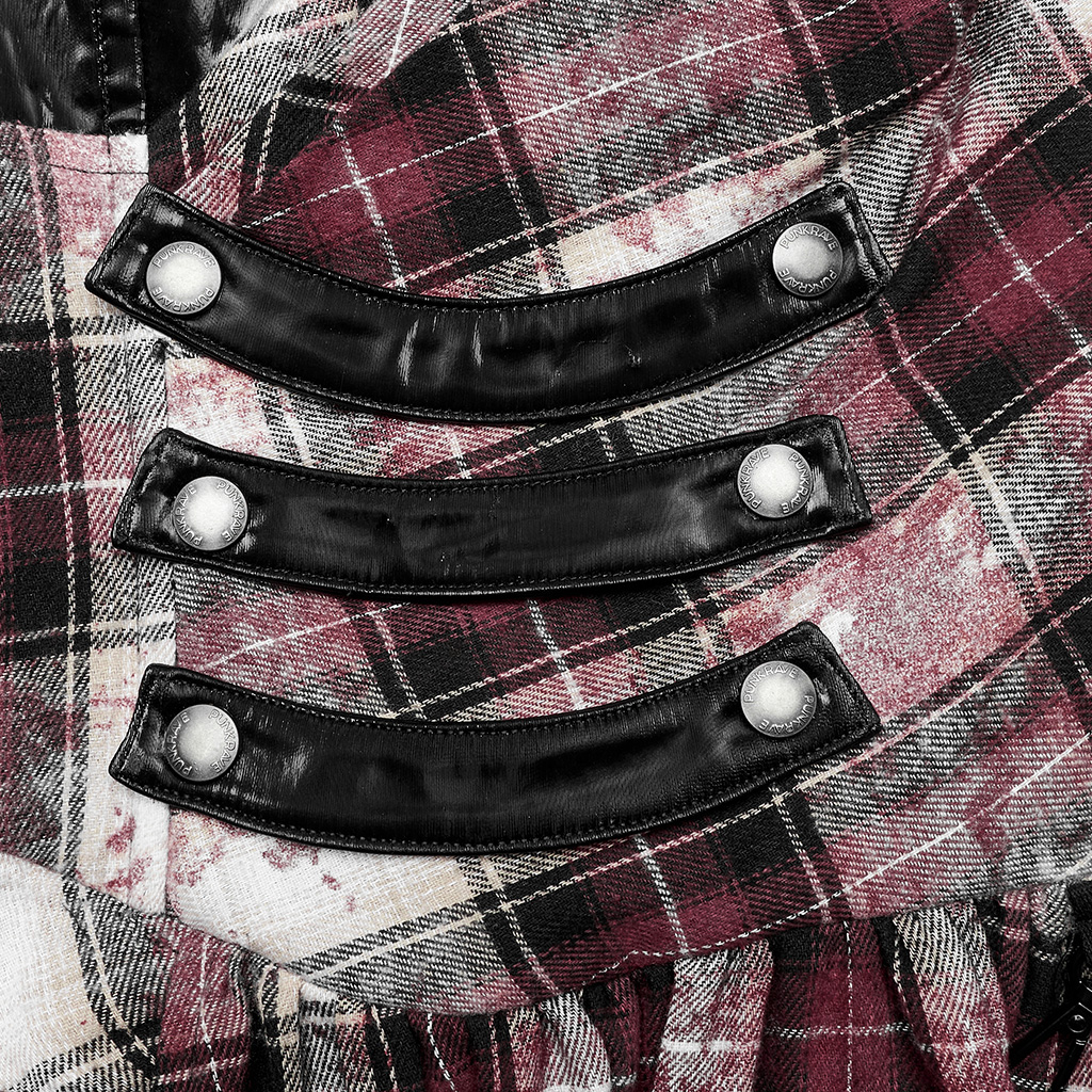 1. It is made of tie-dyed printed plaid fabric, spliced with micro elastic and bright fine texture faux leather.