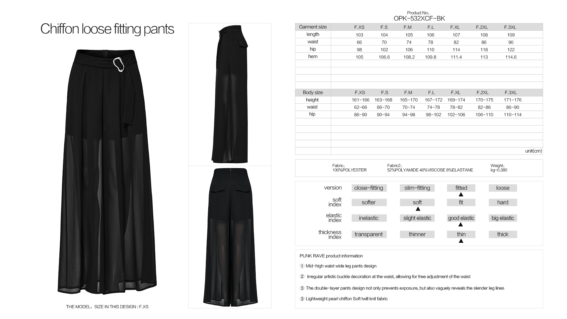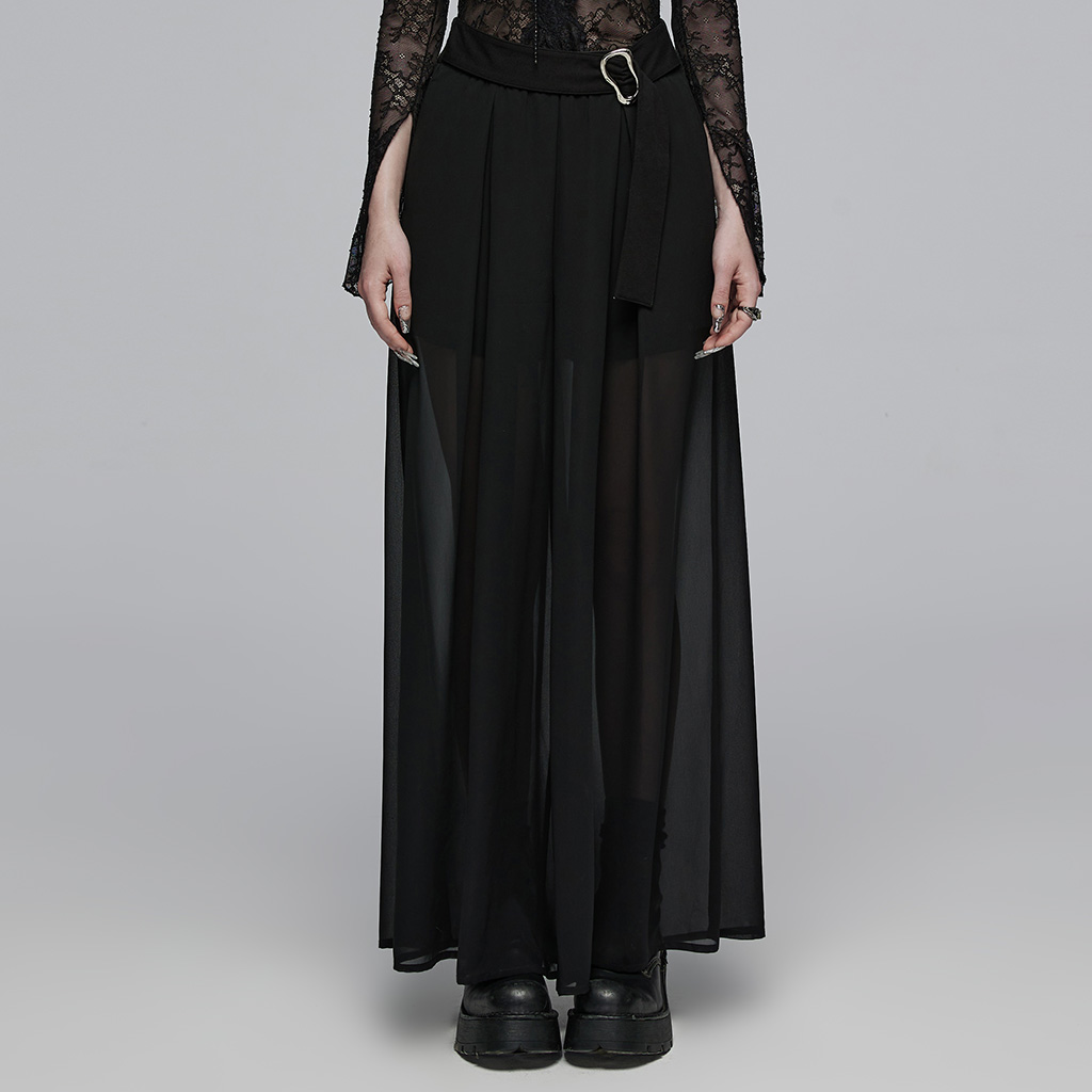 Punk Rave OPK-532XCF Double-Layer Irregular Artistic Buckle Decoration Mid-High Waist Wide Leg Pants Design Chiffon Loose Fitting Pants