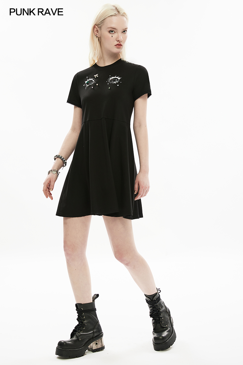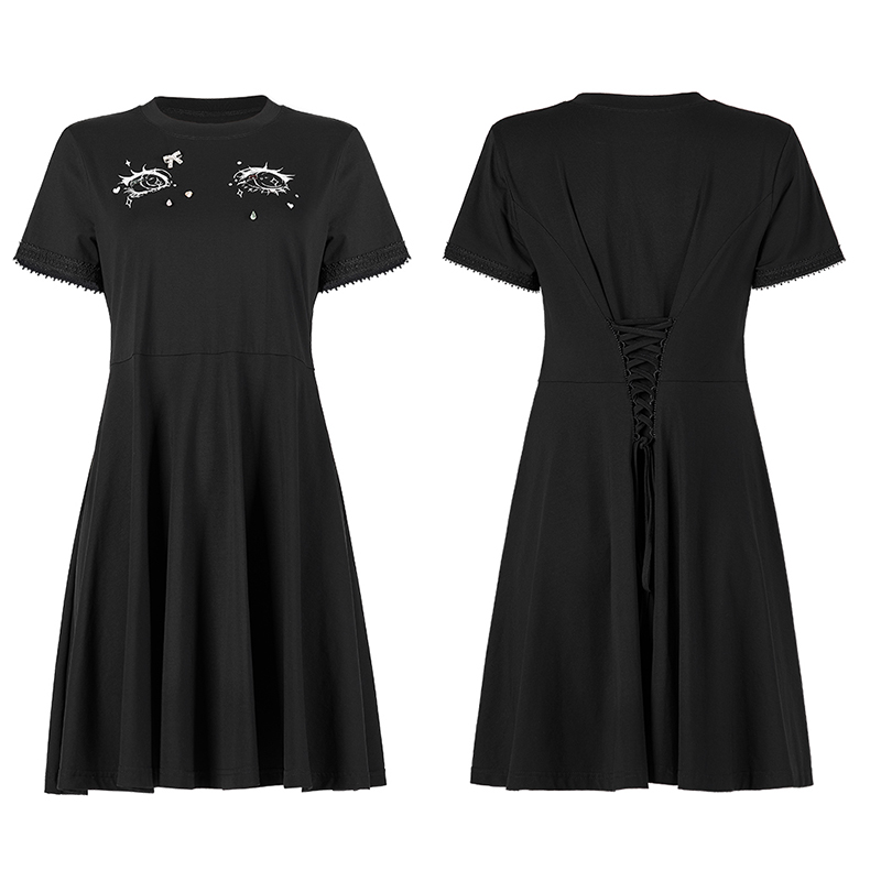 Dark Casual Daily Life Simple Print Lace Dress OPQ-1242LQF