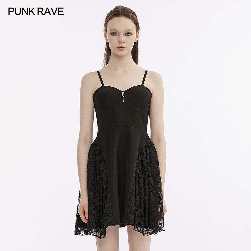 5. Both sides of the skirt splicing dark lace.