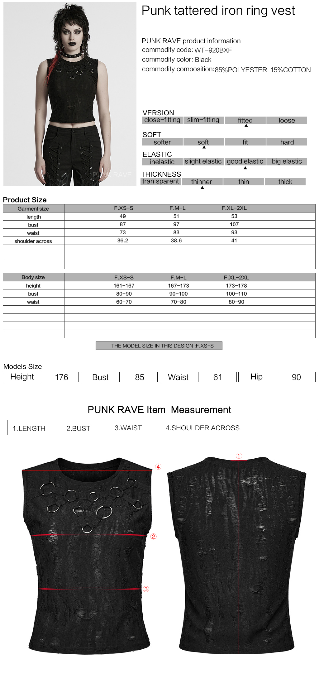 Punk Rave WT-920BXF Avant-Garde And Unique Effect Punk Tattered Iron Ring Vest