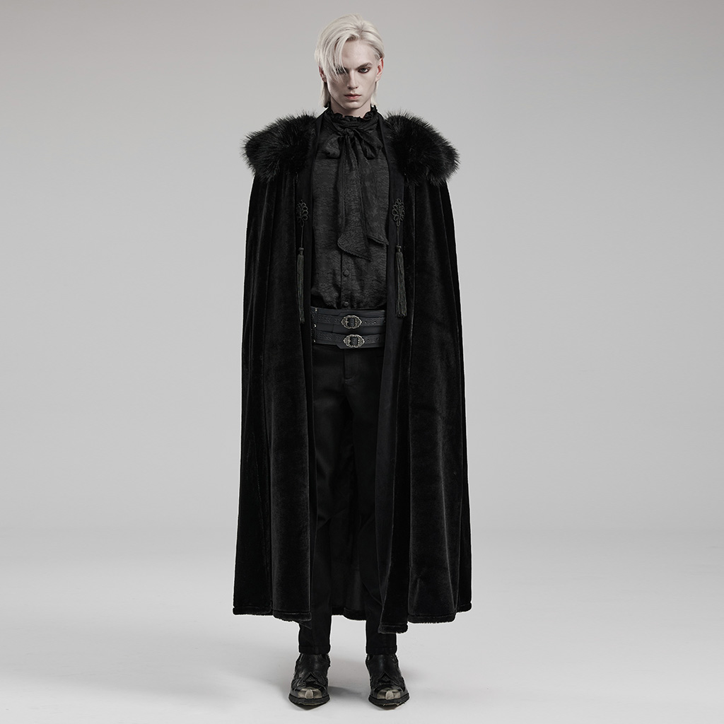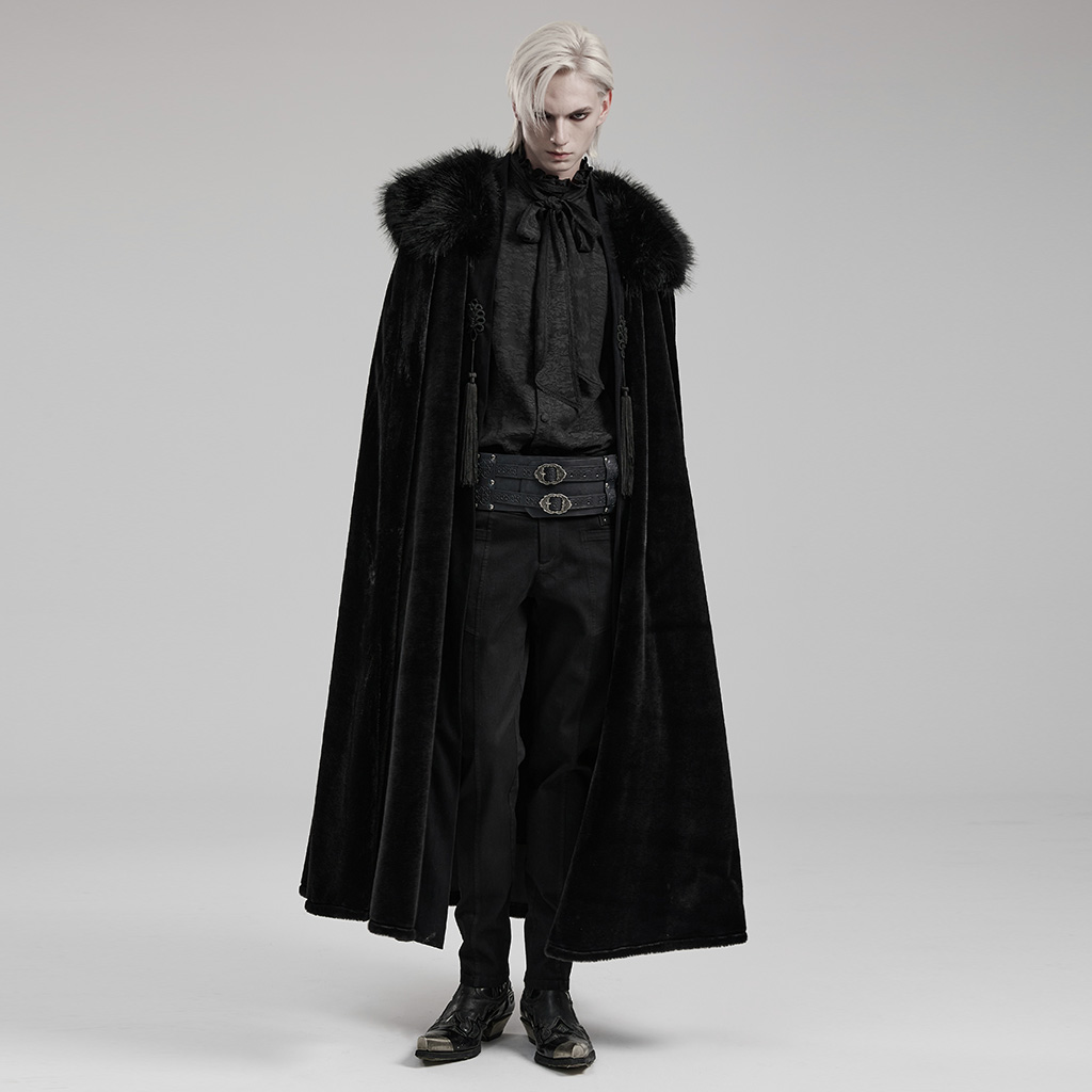 Punk Rave WY-1557DPM Comfortable Plush Detachable Warm Fur Collar Goth Handsome Men's Cloak