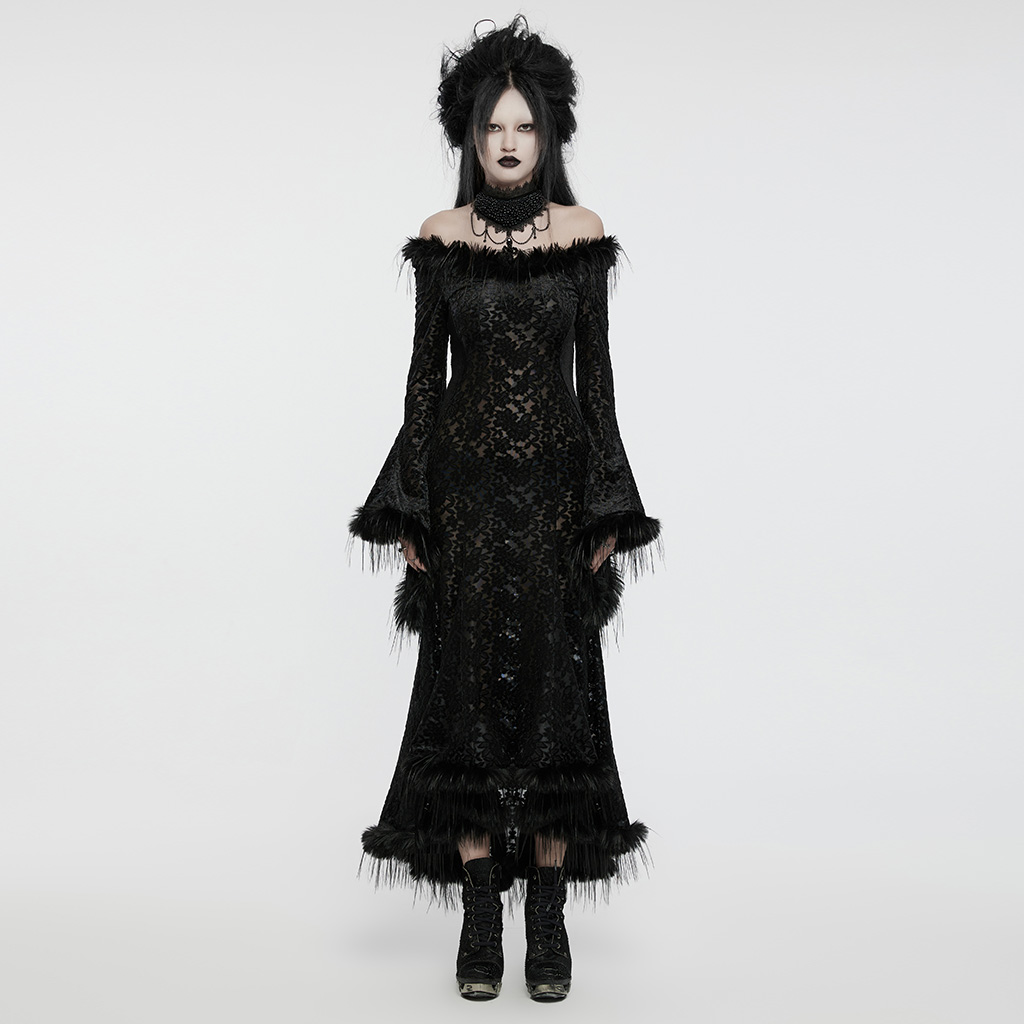 Punk Rave WQ-760LQF Drawstring Back Waist V-Neck Or Slash Neck Goth Dark Goddess Dress
