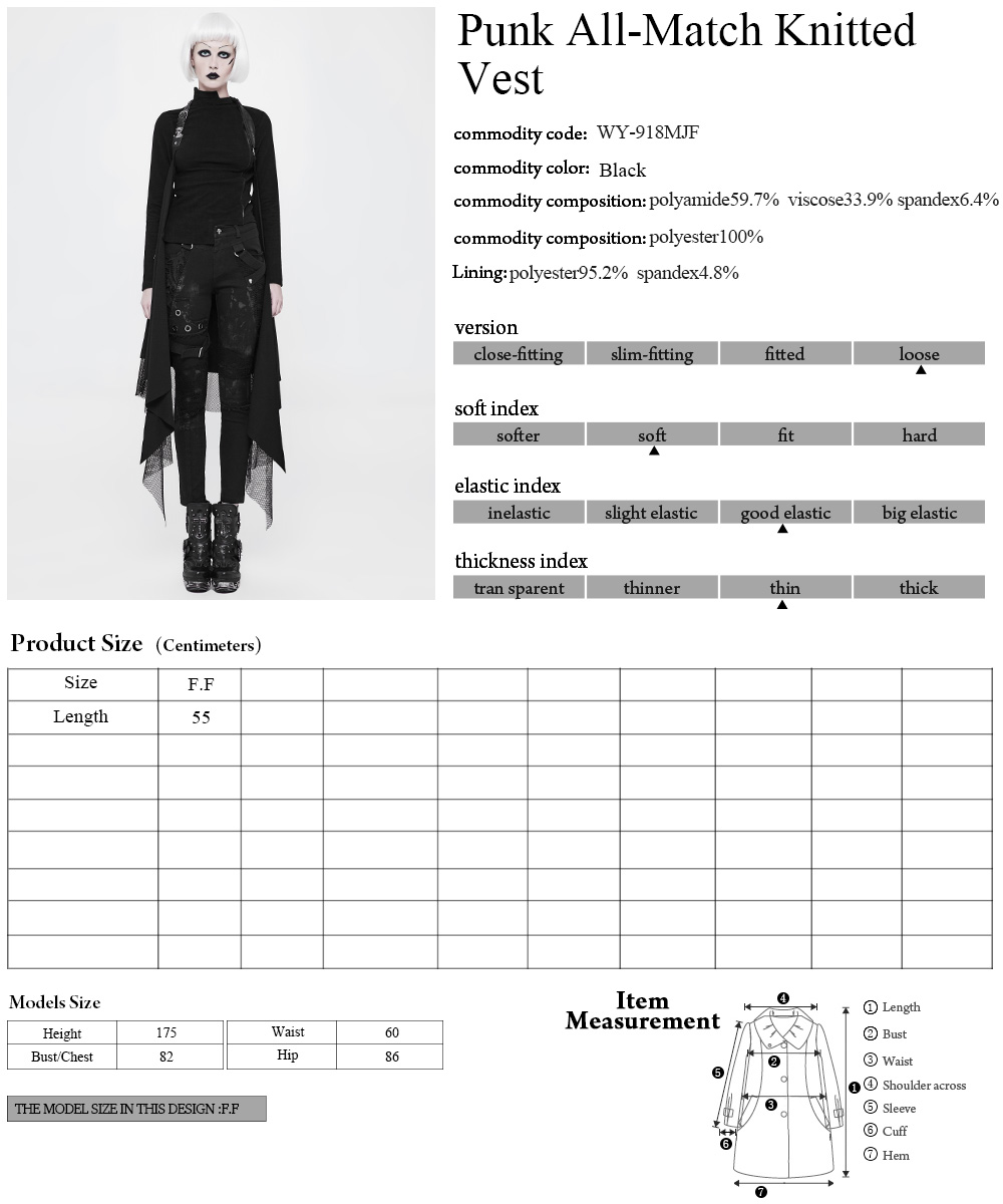 Punk Rave Elastic Knitted Fabric Net Cloth Punk All-Match Knitted Vest