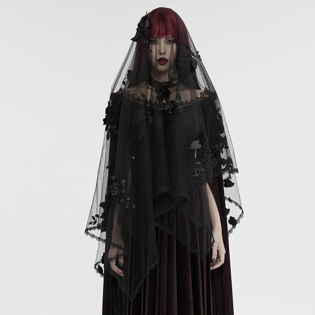 Punk Rave WS-735FSF Exquisite Lace Embellishments Aesthetic Darkness Skull Studs Gothic Veil