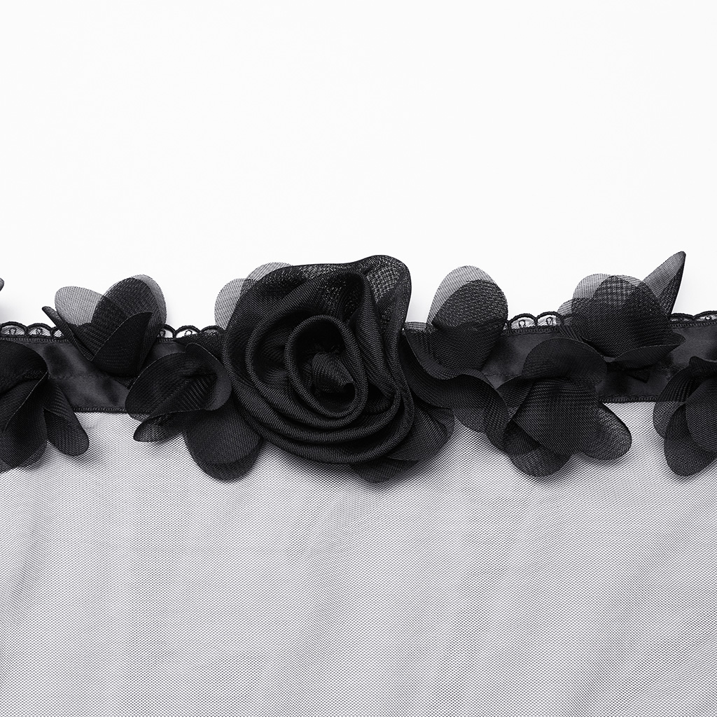 1. Made of lightweight and soft mesh fabric 2. The dynamic and ethereal feathere are eye-catching, enhanced by 3D roses, sexy and bright. 3. Exquisite lace hem.