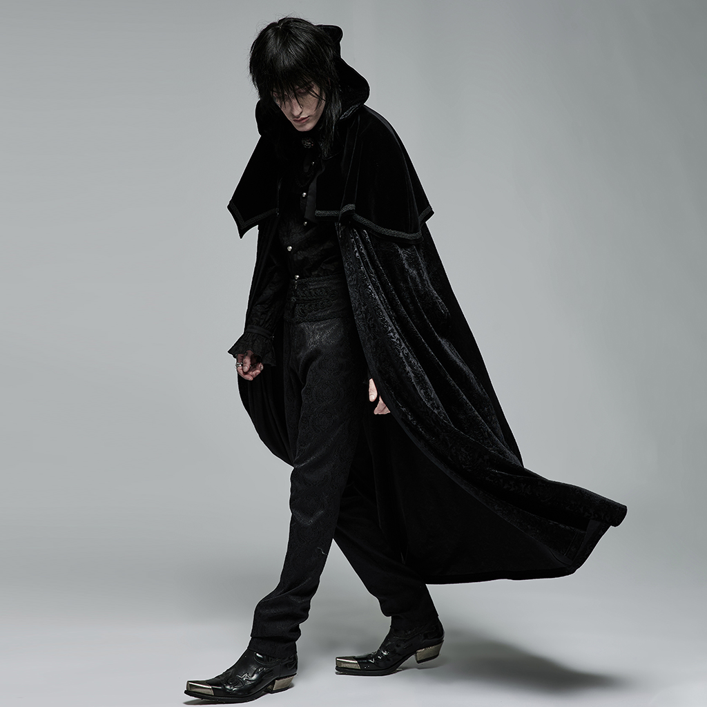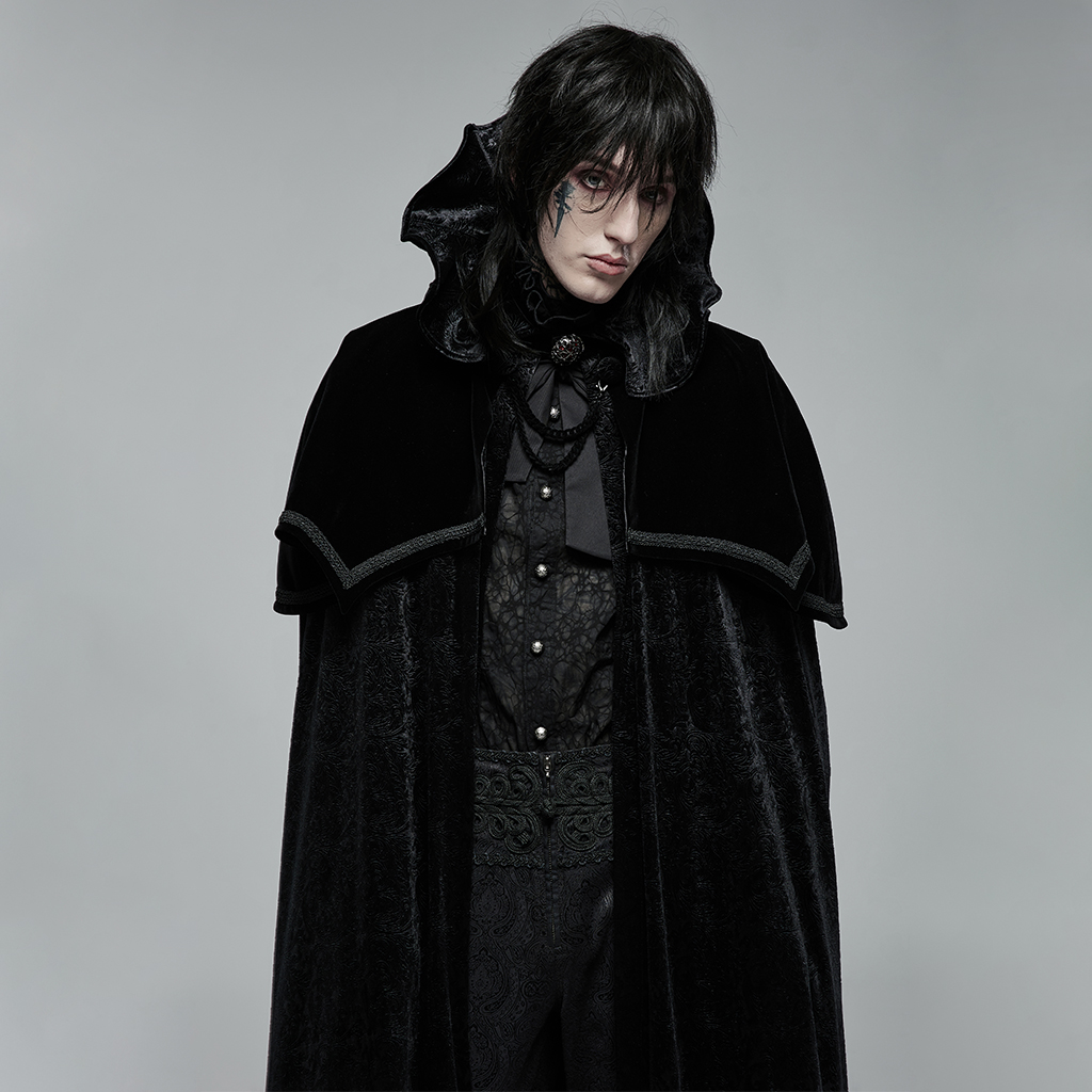 PUNK RAVE Gothic Noble Night Cloak WY-1378DPM Dark Weft Velvet Fabric And Jacquard Fabric Cloak For Men