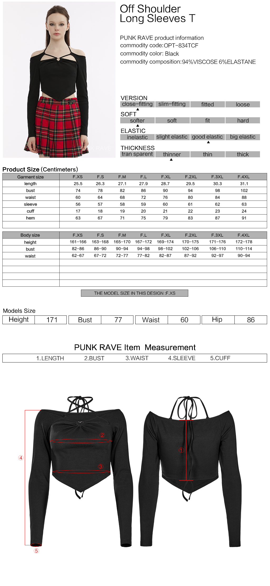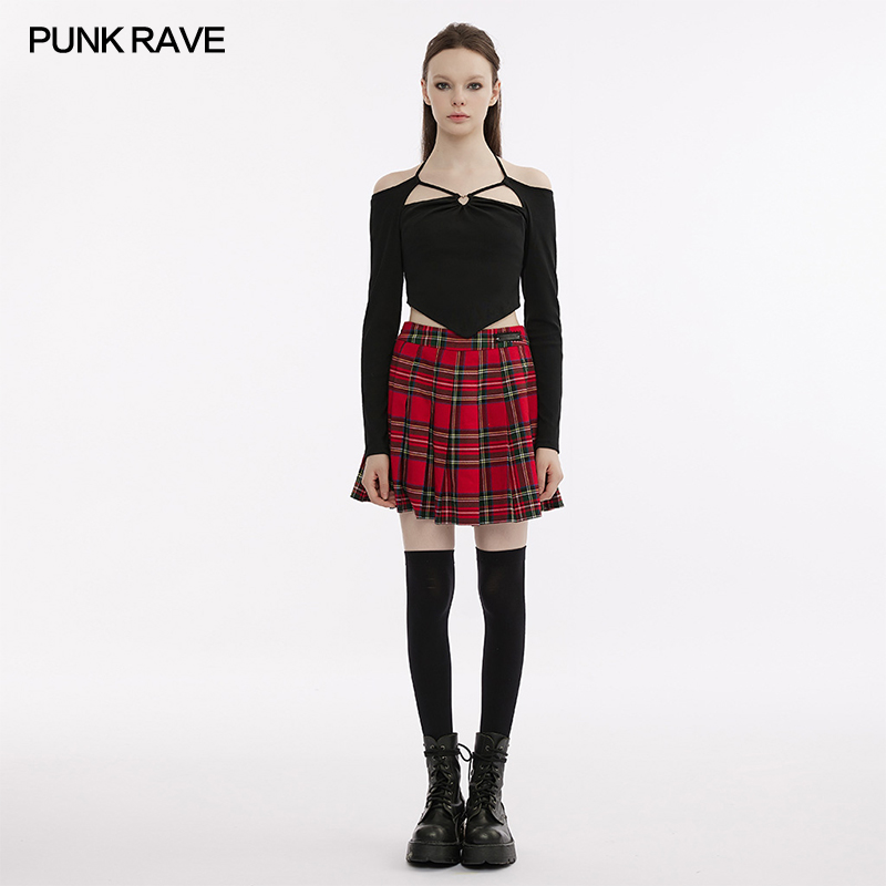 Punk Rave Heart Shaped Hollow Out Collar With Neck Hanging Design Sweet Style Off Shoulder Halterneck Long Sleeves Top OPT-834TCF