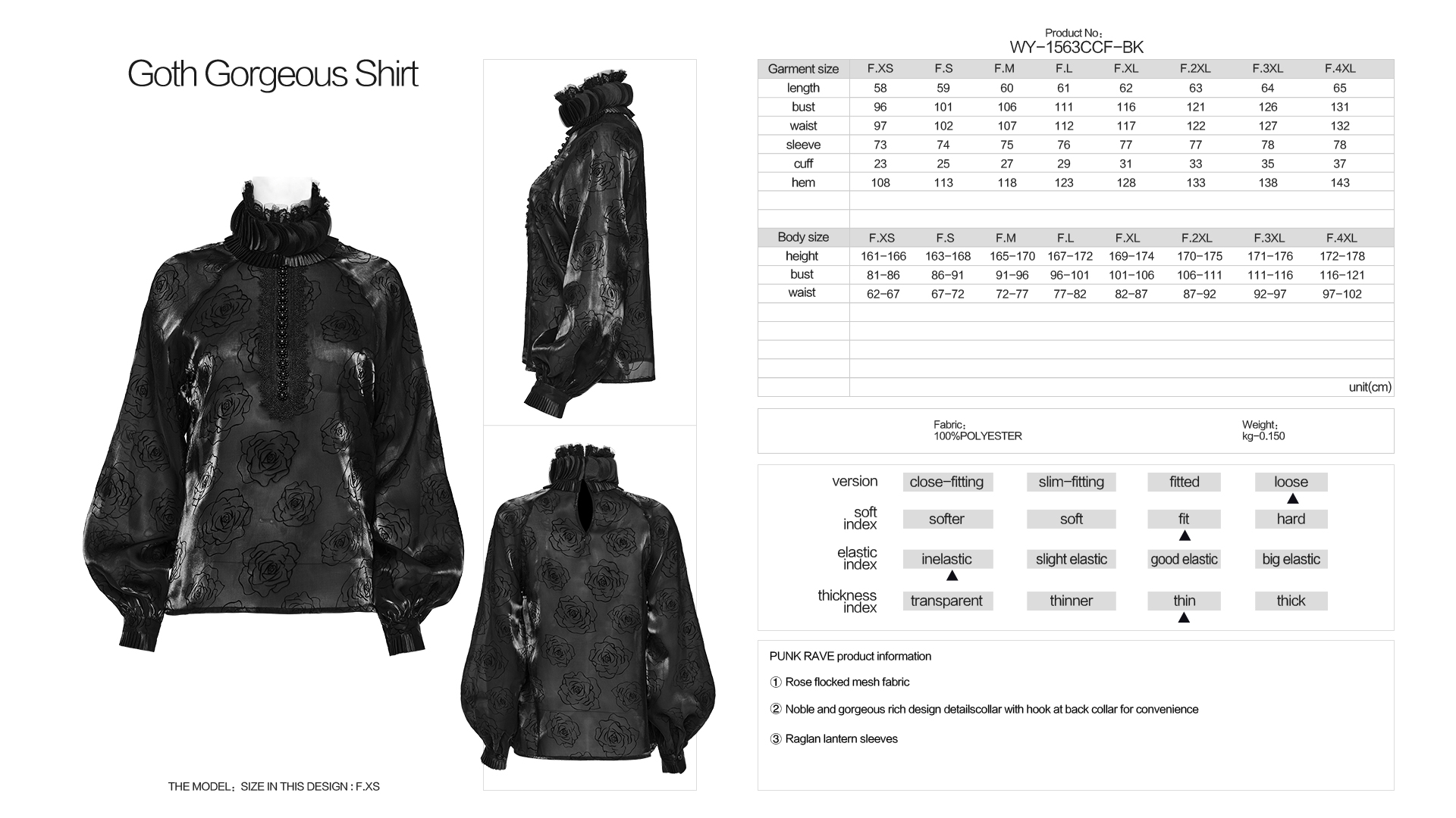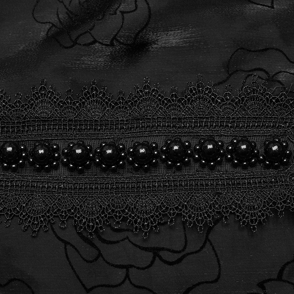 Punk Rave Noble And Gorgeous Rich Design Details Collar Raglan Lantern Sleeves Rose Flocked Mesh Fabric Goth Gorgeous Shirt