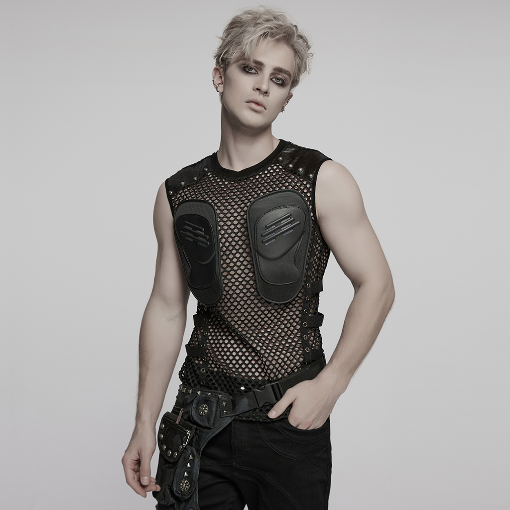 Punk Rave WT-1016BXM Sleeveless Wide Shoulder Design Cyber Punk Mesh Vest