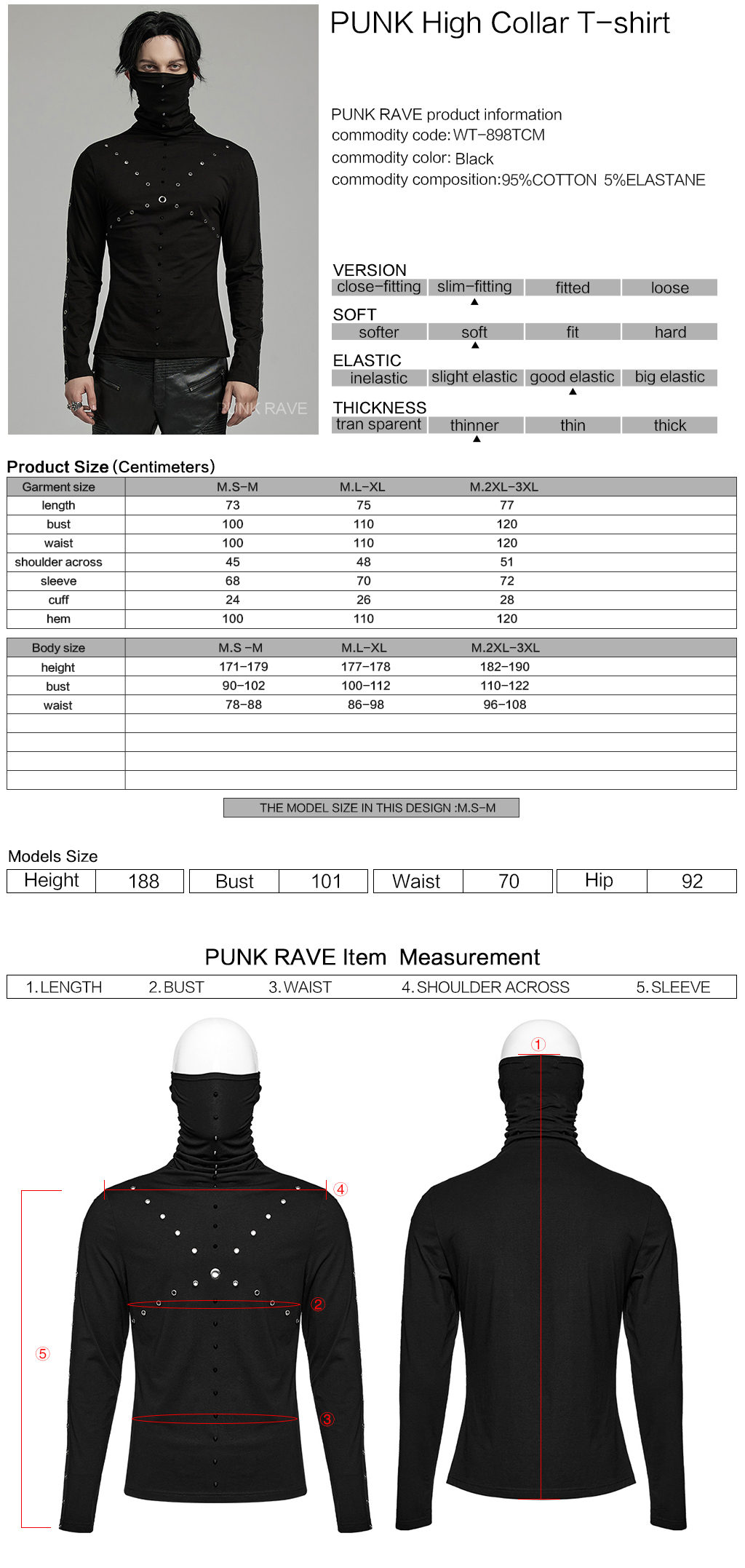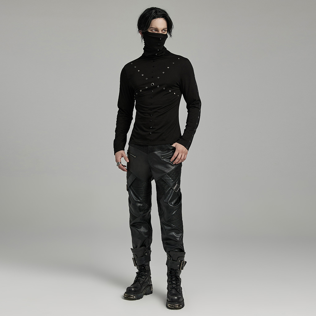 Punk Rave WT-898TCM Spikes And Eyelet Webbings Decoration Punk High Collar T-Shirt