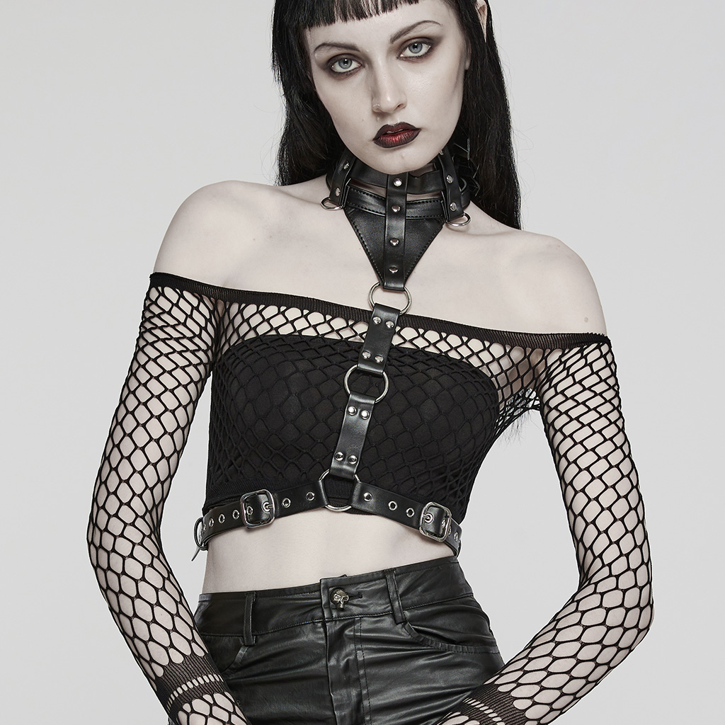 Punk Rave WS-628LHF Standing Collar Element And Hollowed-Out Punk Choker Harness