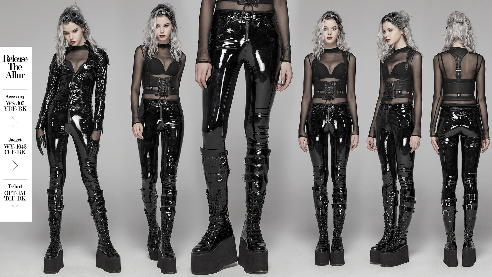 Punk Rave Simple Styling Tight Version Placket Zipper Buckle Loop Punk Patent Leather Pants