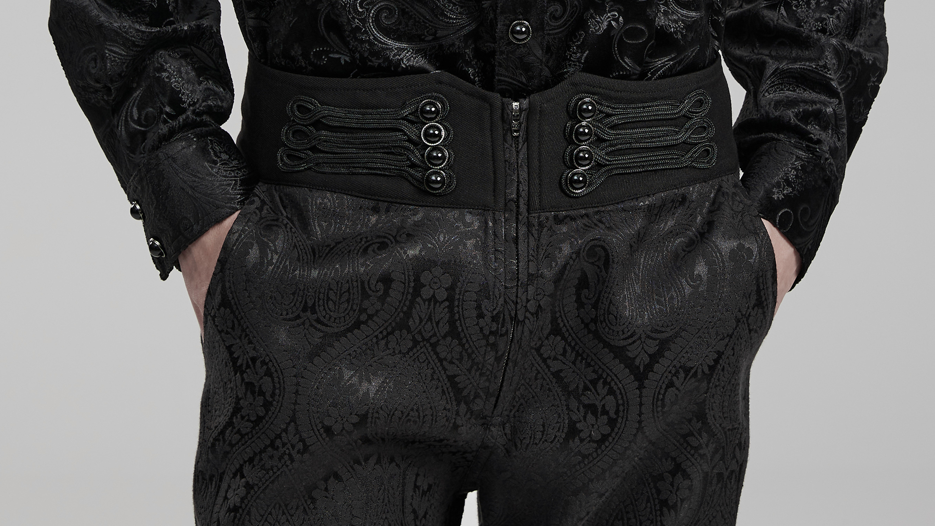Punk Rave Exquisite Hand Sewn Buttons Personalized Wrapped Decal Decoration Jacquard And Twill Fabric Goth Men's Jacquard Pants