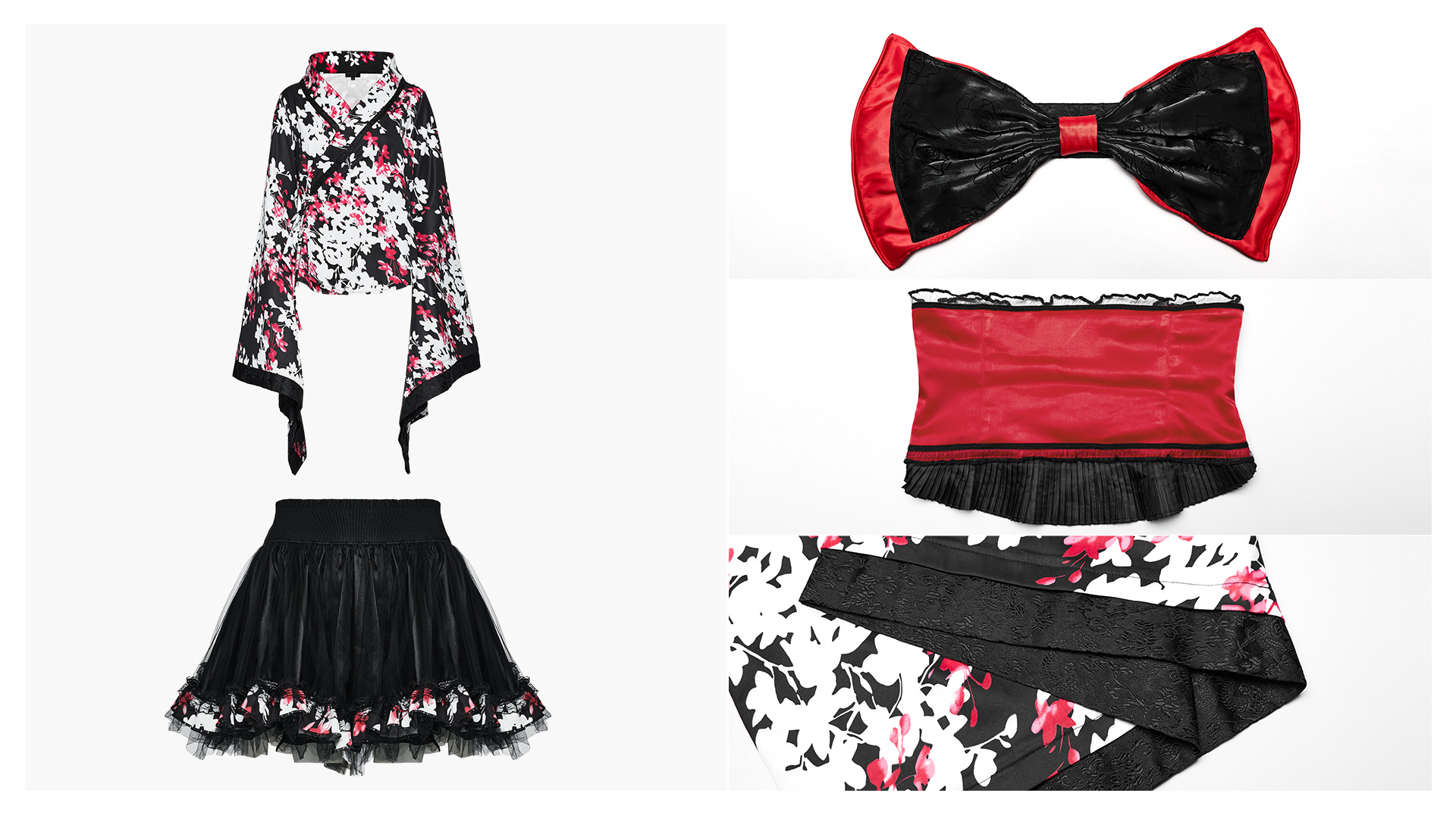 Punk Rave WLQ-001LQF Sexy And Cute Four Piece Set Slight Elastic Printed Woven Fabric Lolita Printed Kimon