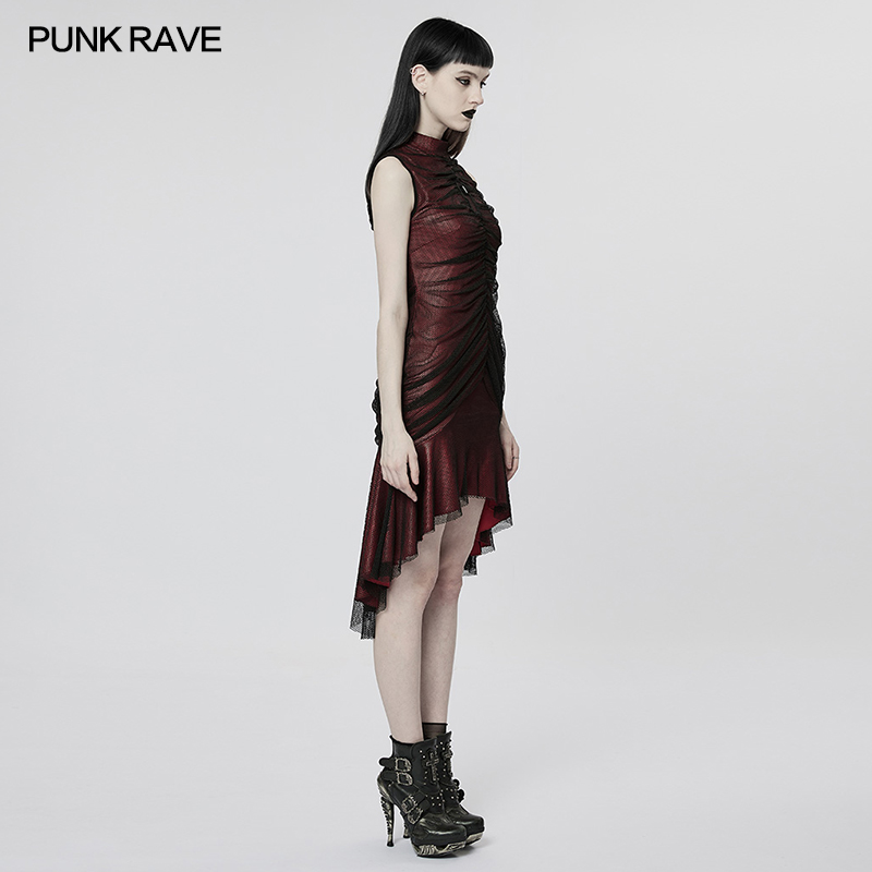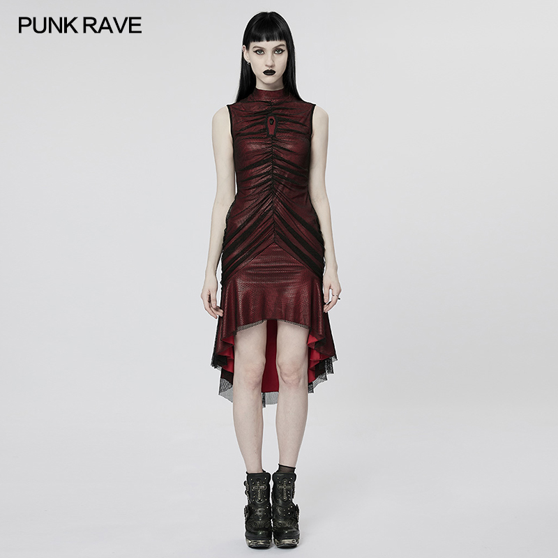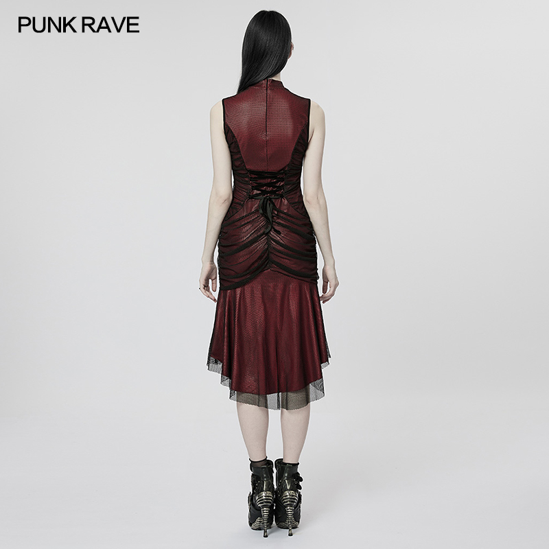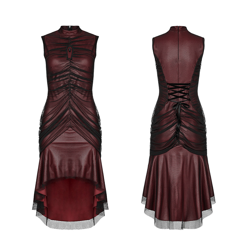 Goth Vintage Wine Red Prom Club Evening Dresses Sexy Elegant Mesh Fishtail Skirt WQ-607LQF