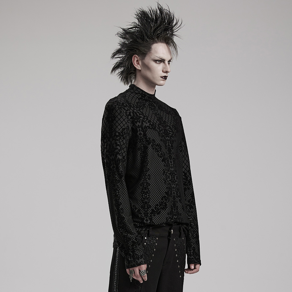 Punk Rave WT-830TCM High Collar Unique Aesthetic Positioning Flocking Pattern Elastic Knitted Fabric Goth Flocking T-Shirt