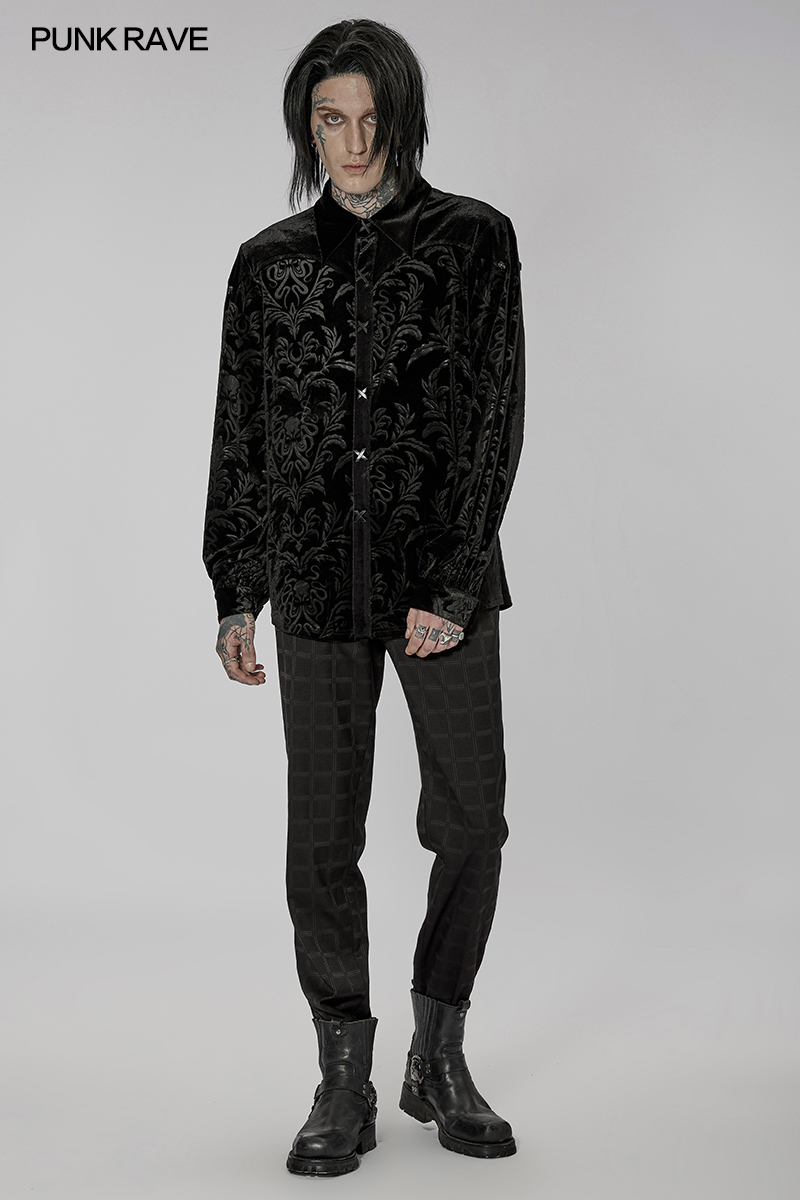 Dark Black Goth Gorgeous Octopus Embossed Velvet Print Loose Shirt WY-1428CCM