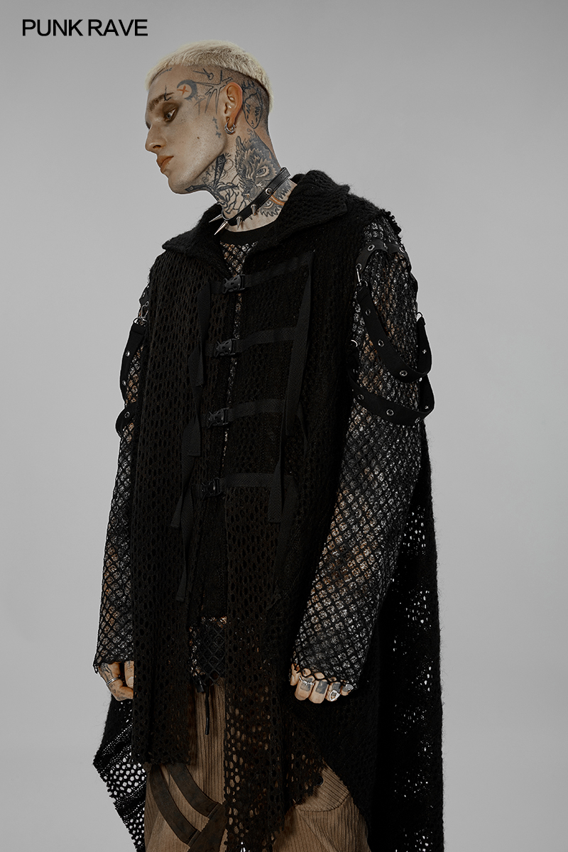 Men Wasted Earth Style Irregular Gauze Splicing Knitted Vest Black Sweater WY-1437ZCM