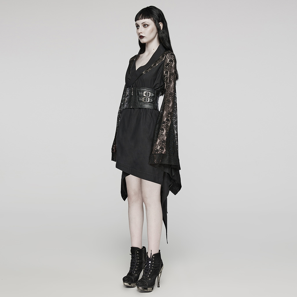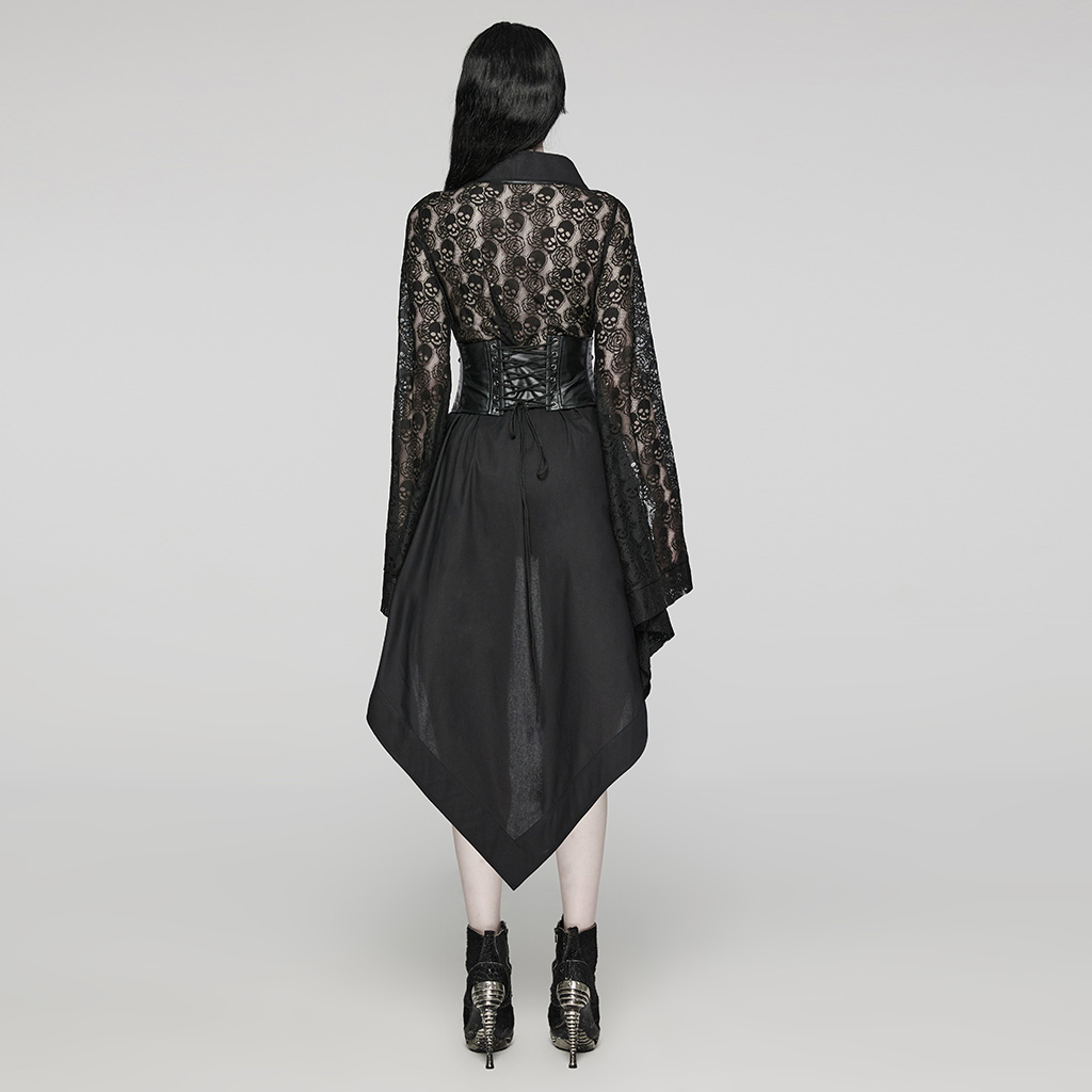 Punk Rave WY-1581XCF Irregular Hem Magnificent Collar Skull And Rose Pattern Lace And Inelastic Woven Fabric Punk Kimono