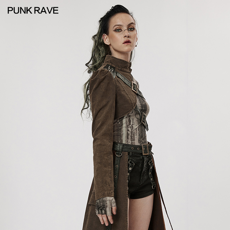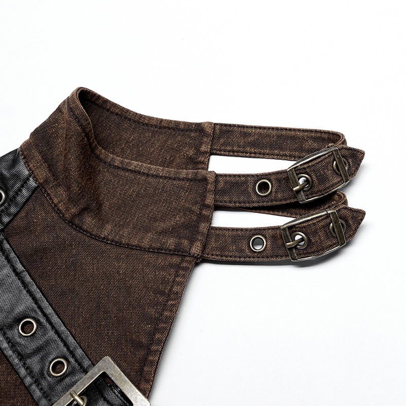 Steampunk One Shoulder Jacket Crop Tops West Cowboy Denim Jacket WY-952DQF
