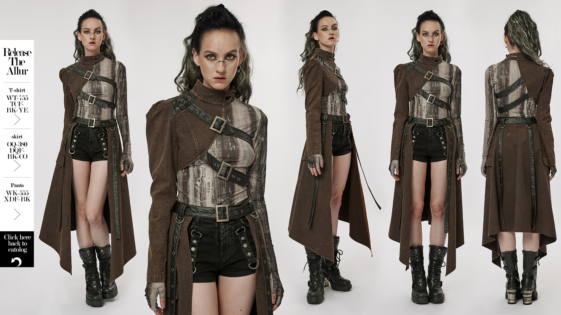 2. Handsome one-arm version, adjustable loops to fix the neckline, functional and decorative body faux leather loops