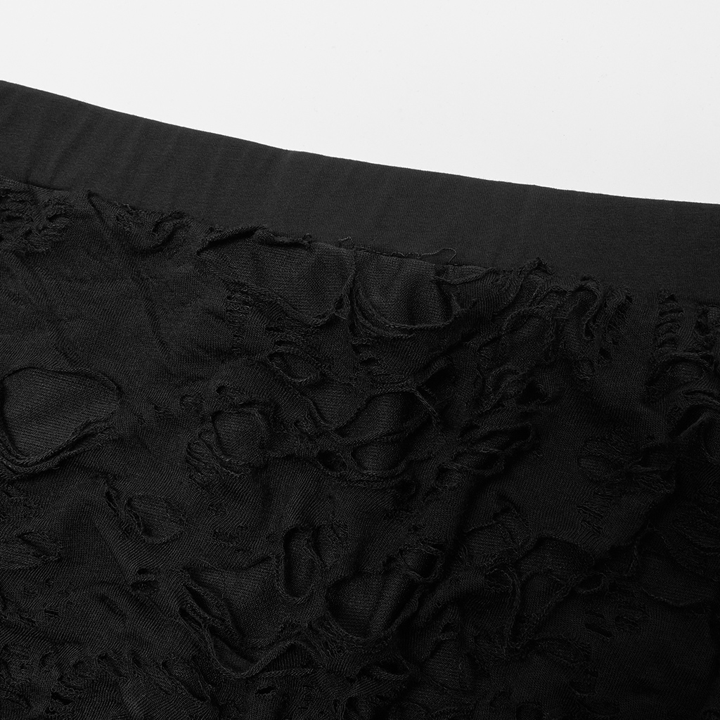 1. The front panel is a novel skirt-like cutting piece, making the vision richer. 2. It is made of elastic knitted fabric of ragged texture and mesh. 3. The loop at the thigh is decorative. 4 Flared design are more decorative for legs.