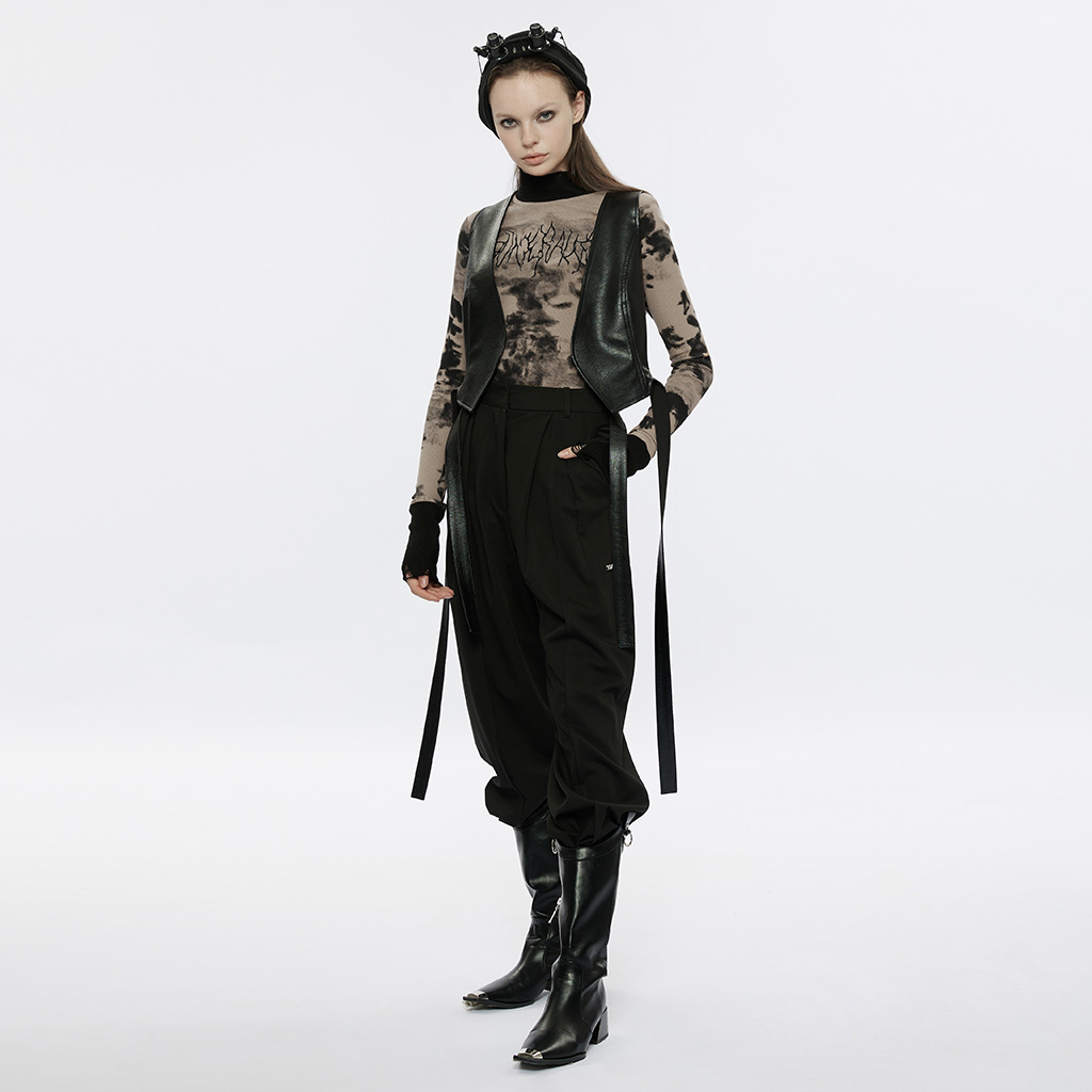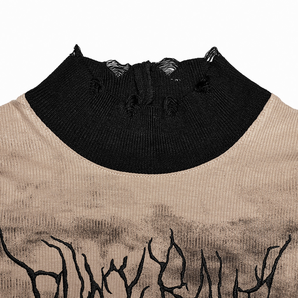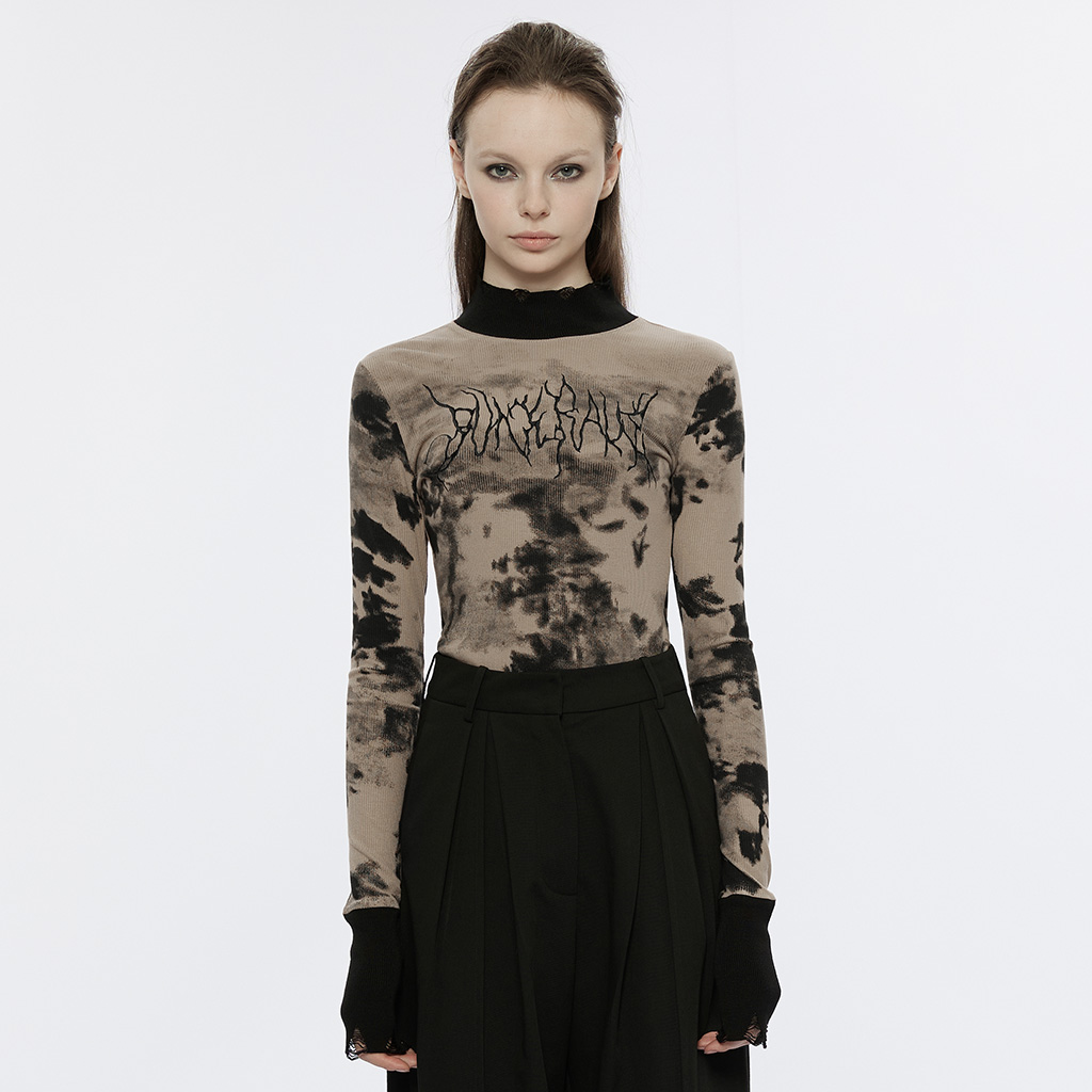 Micro-Perspective Collect Waist Embroidered Ink Printing T-Shirt OPT-807DQF