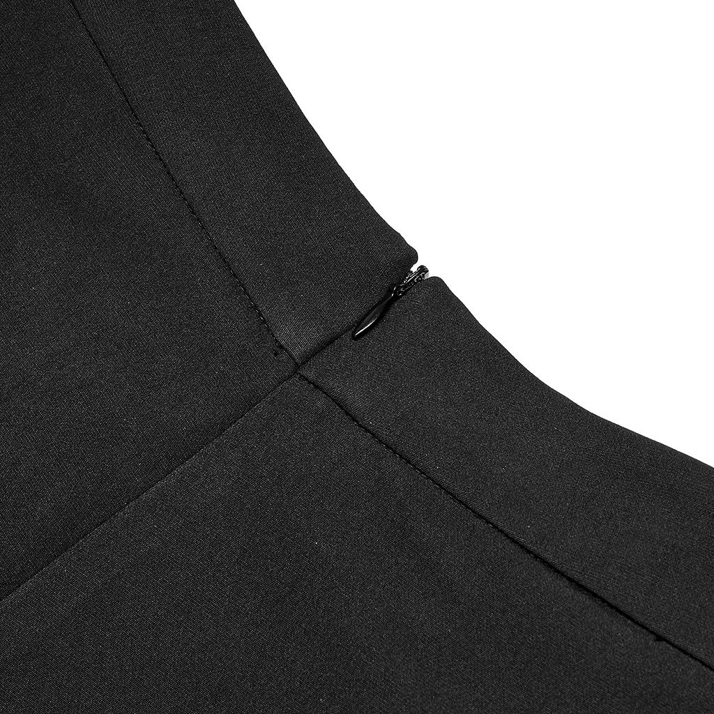 1.A line slim fit 2.Asymmetric geometric cutting design of front panel 3.Dark letter engraved nail design adds detail 4.Detachable S-shaped leg loop make it more versatile when removed. It can also be used as a accessory to match other clothes.