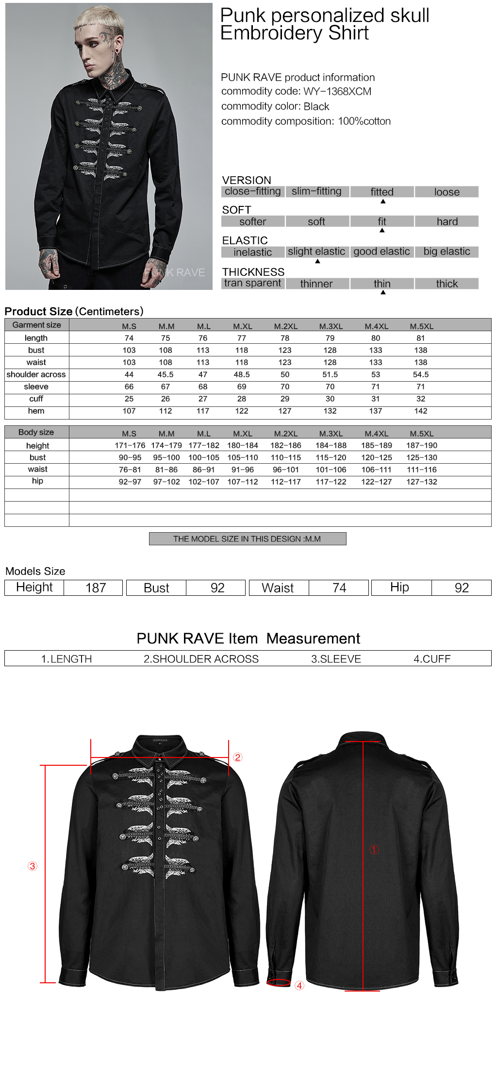 Punk personalized skull Embroidery Shirt WY-1368XCM