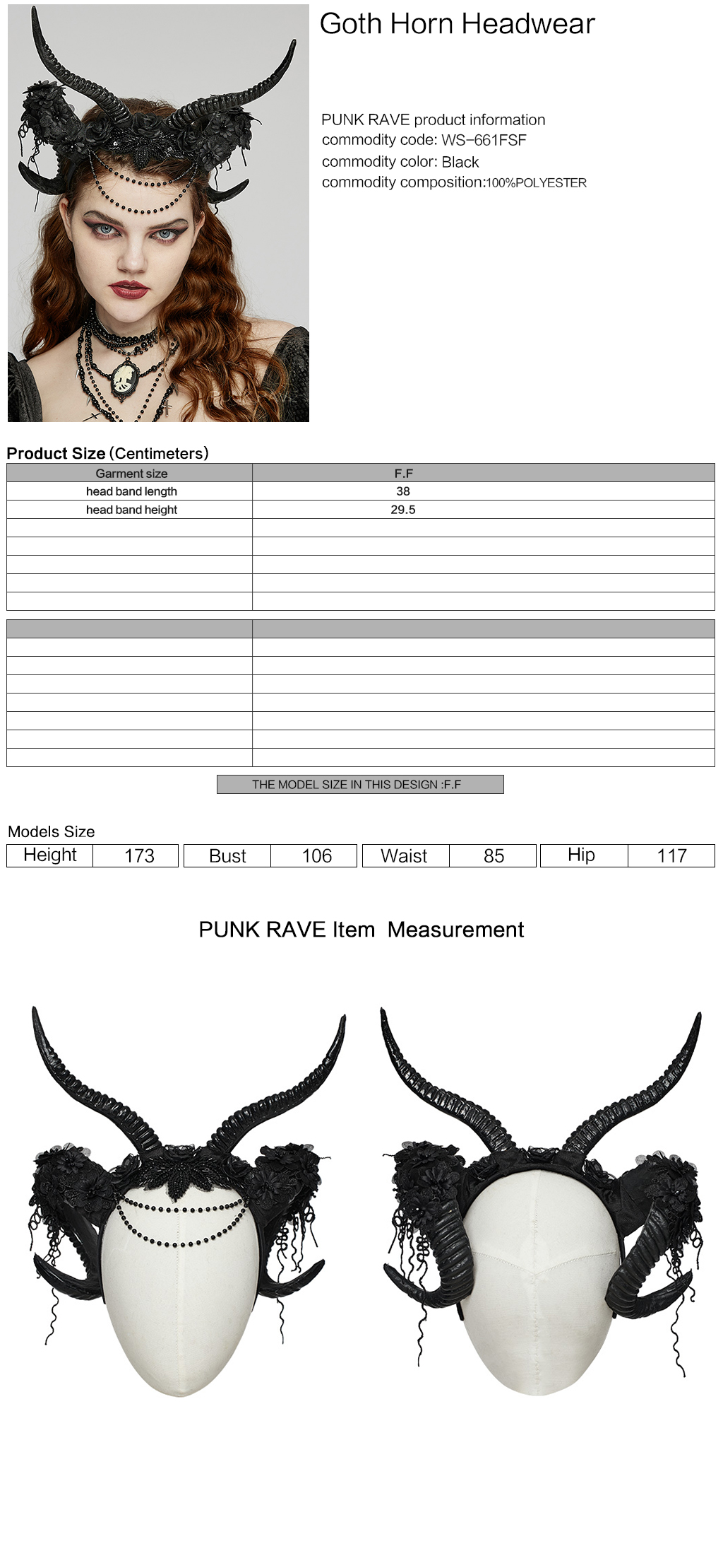 Punk Rave WS-661FSF Dark Demon Horn Combines Exquisite Decal Goth Horn Headwear