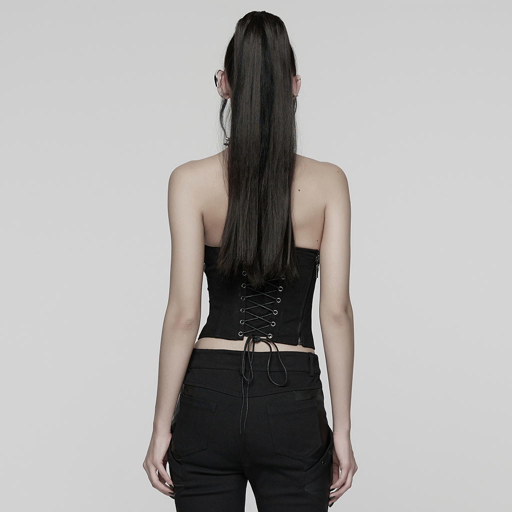 Punk Rave WY-1905SYF Drawstring Hollow-Out Drawstring Design Punk Pleated Tube Top