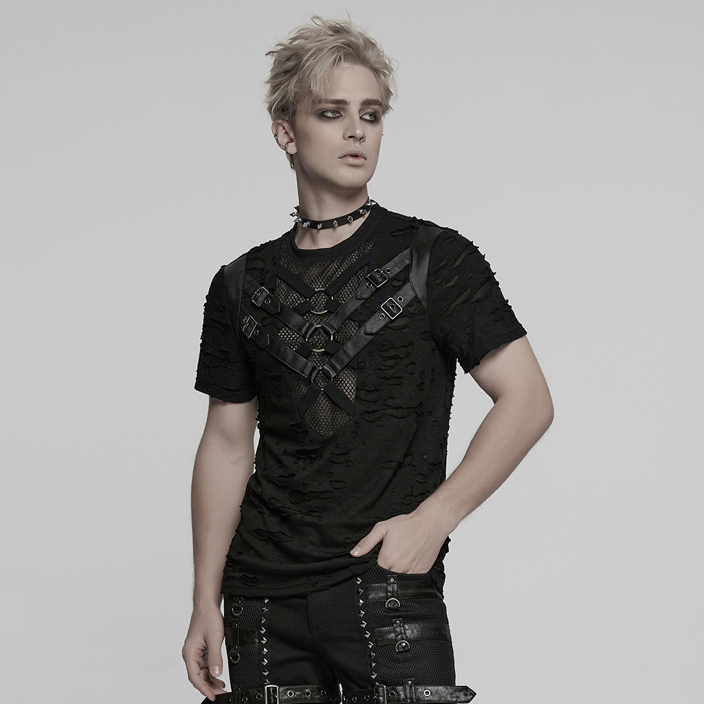Punk Rave WT-1005TDM Mesh And Rubberized Leather Punk Tattered Visual T-Shirt