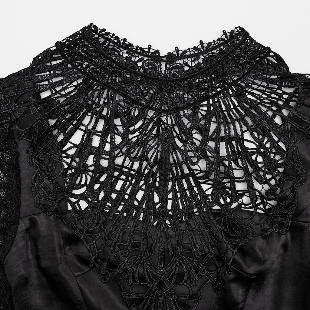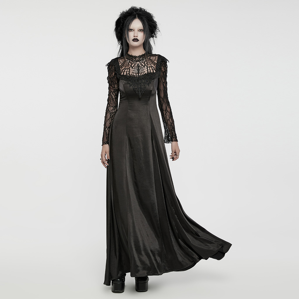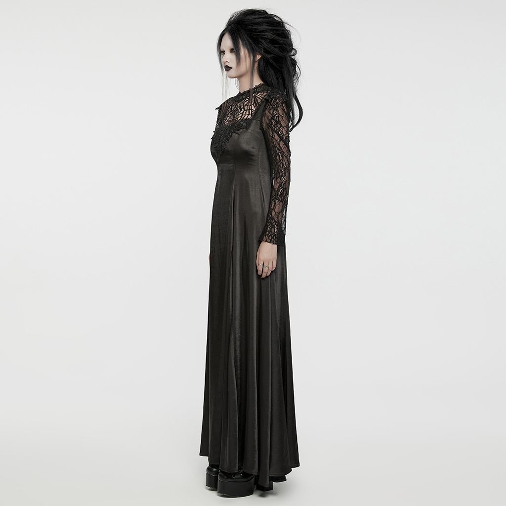 Punk Rave WQ-748LQF Shiny Drape Woven Fabric And Floral Mesh Goth Gorgeous Dress
