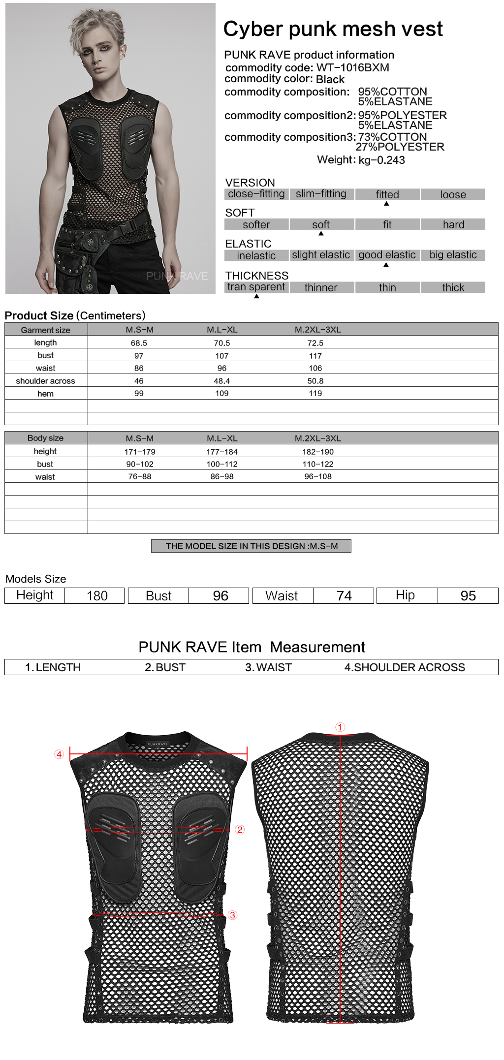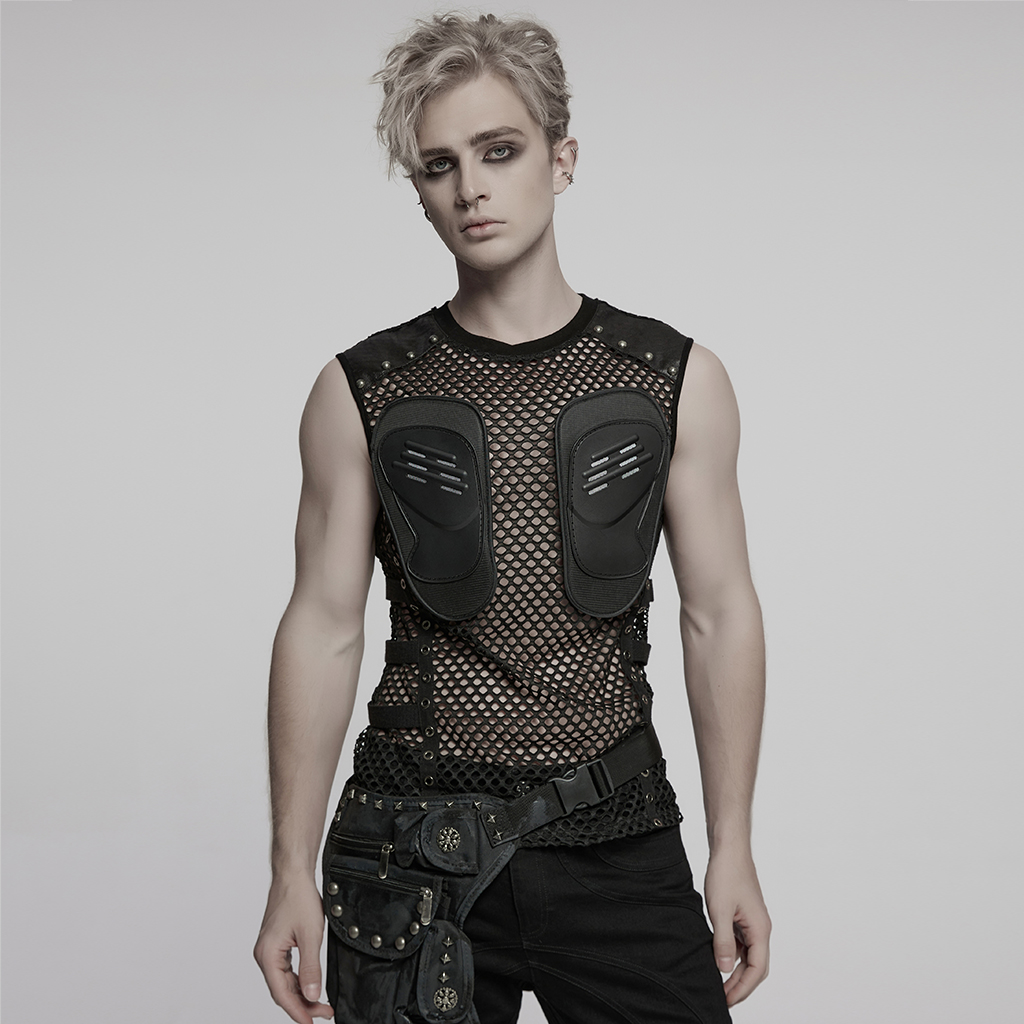 Punk Rave WT-1016BXM Sleeveless Wide Shoulder Design Cyber Punk Mesh Vest