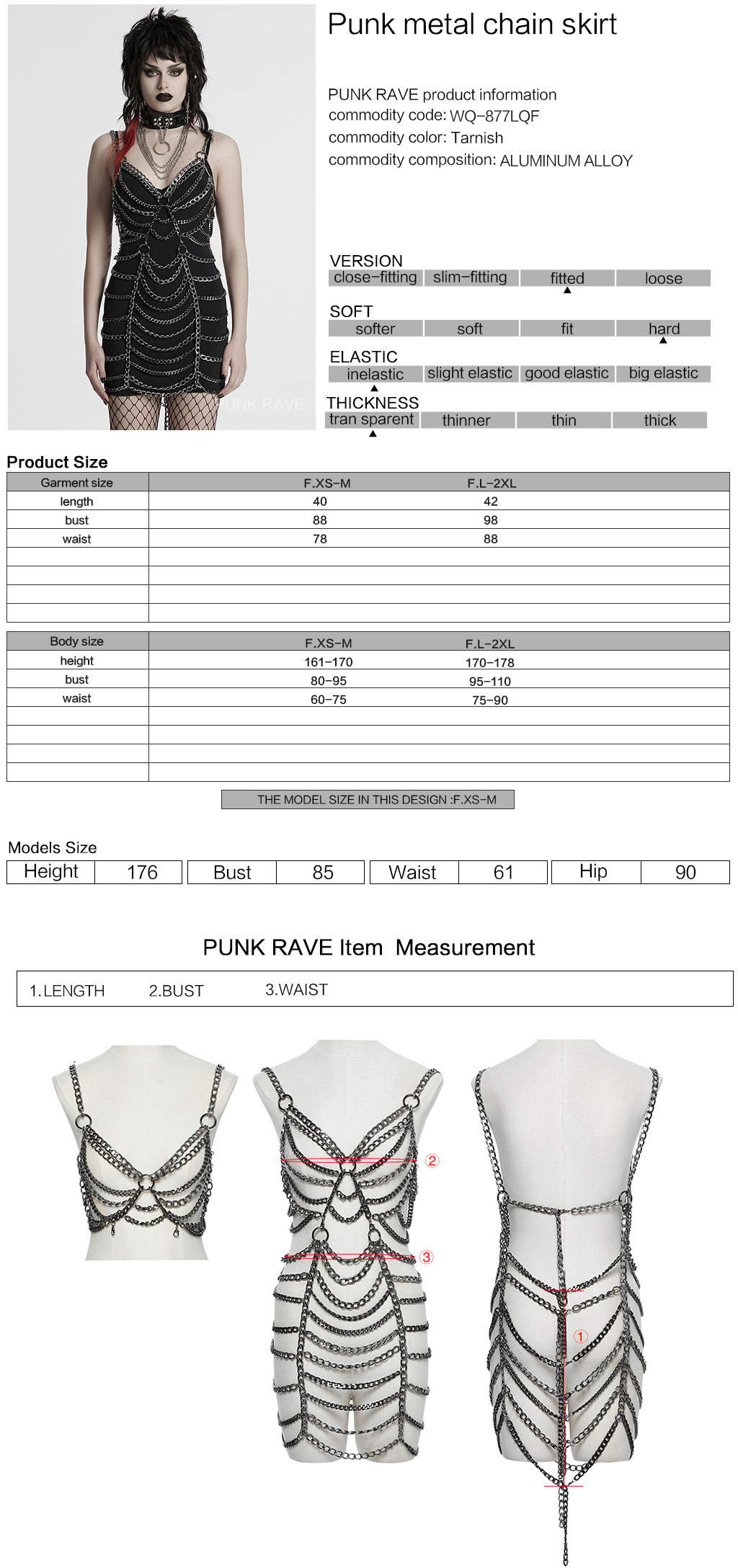 Punk Rave Streamlined Design Punk Metal Aluminum Chain Skirt