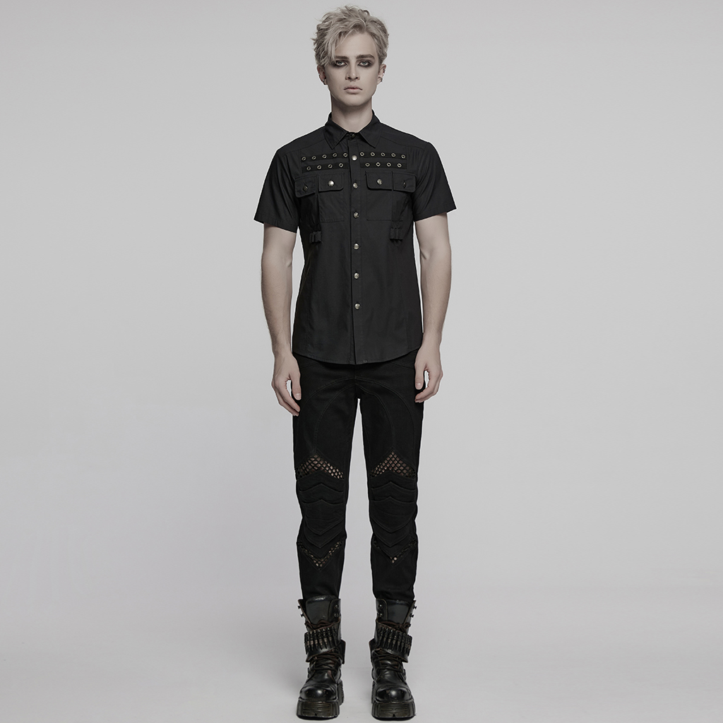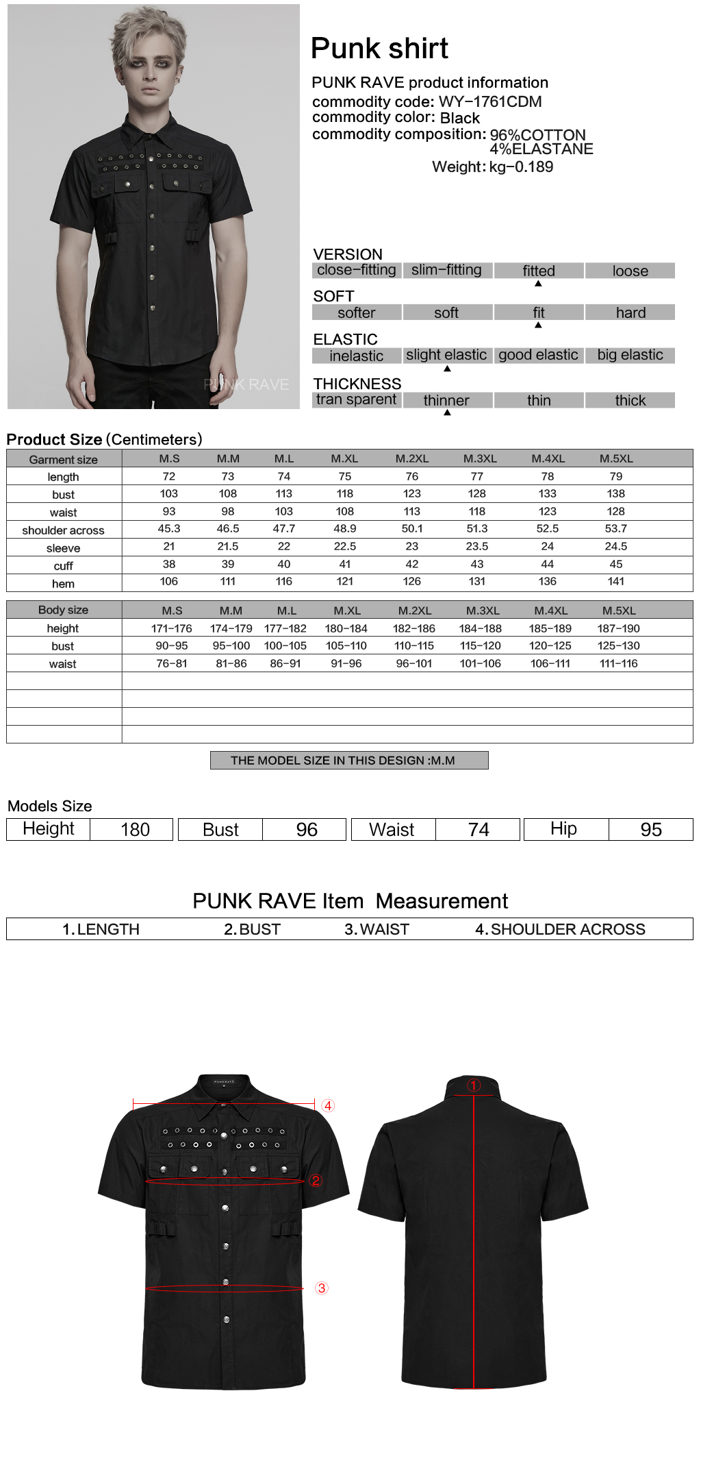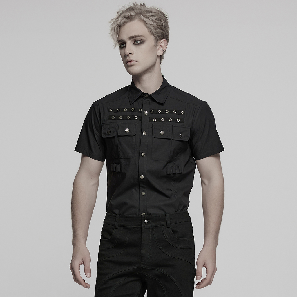 Punk Rave WY-1761CDM Unique Pocket Handsome And Neat Short Sleeved Punk Shirt