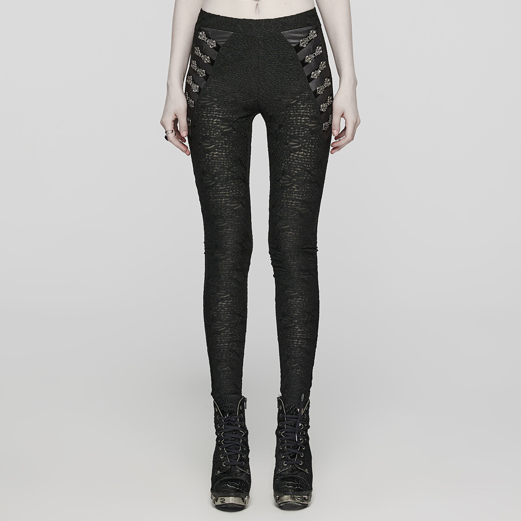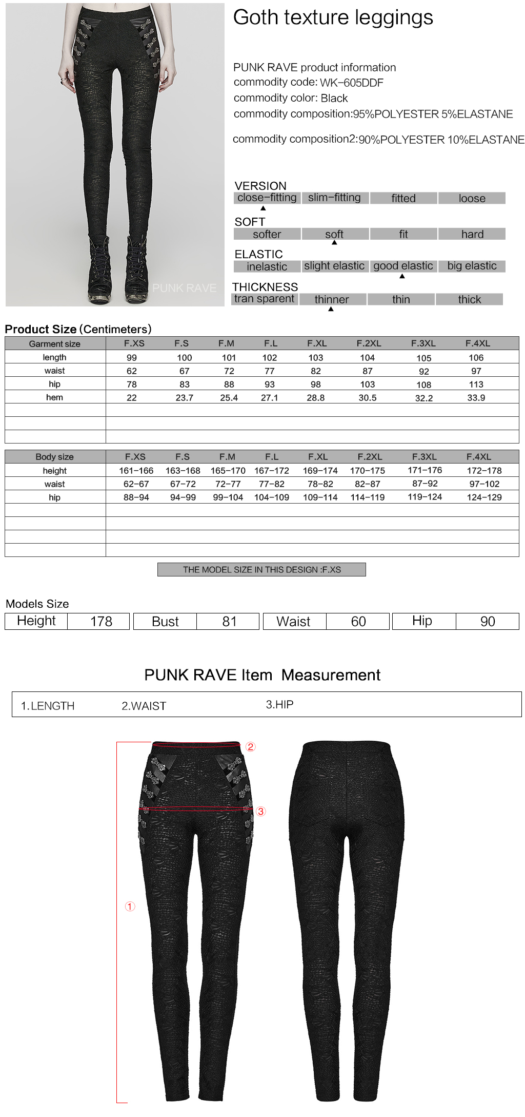 Punk Rave WK-605DDF Stretch Texture Knitting And Calendered Knitting Production Goth Texture Leggings