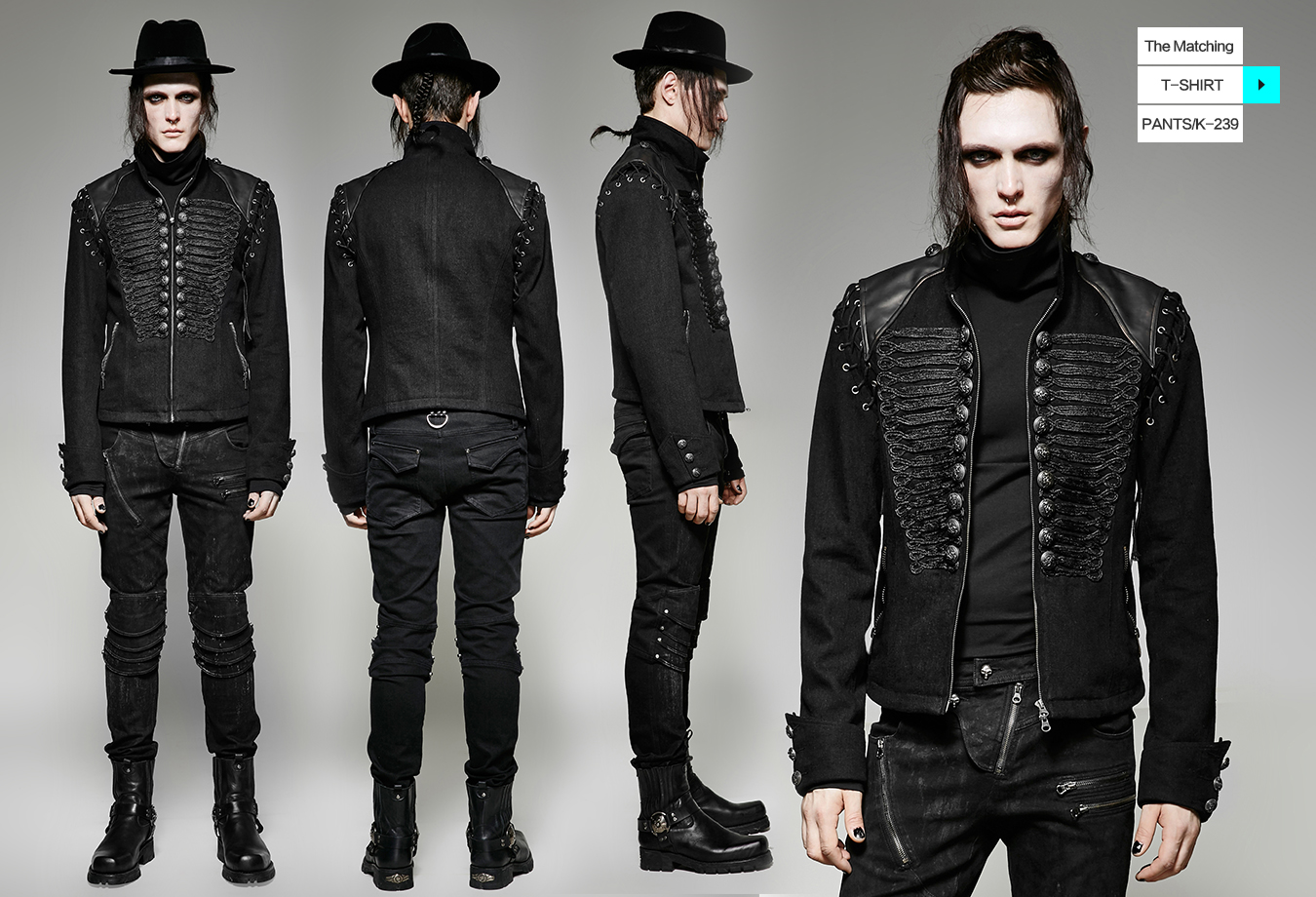 1.The main material is made of rugged denim fabric. 2.Removable sleeves can be used as waistcoat. 3.Front exaggeratedribbon and buttons increased the visual impact.