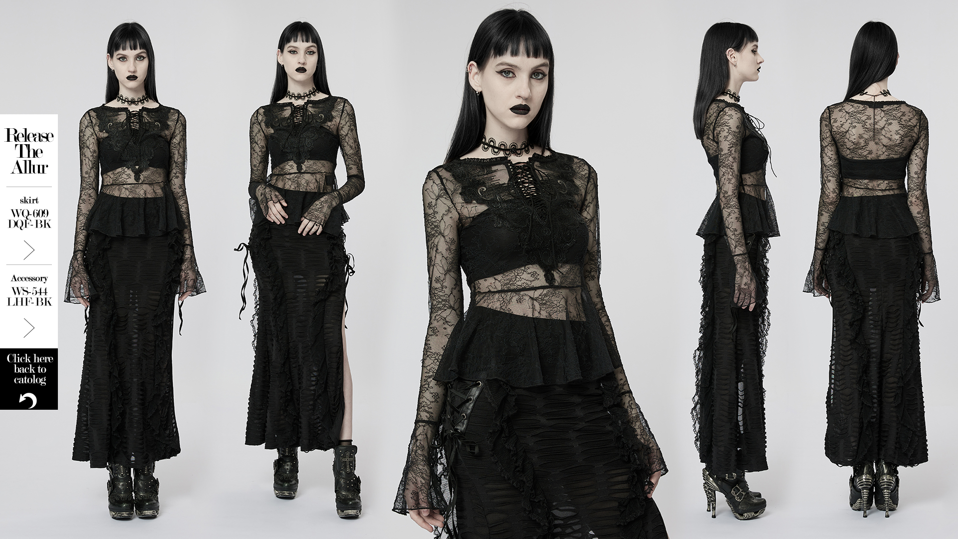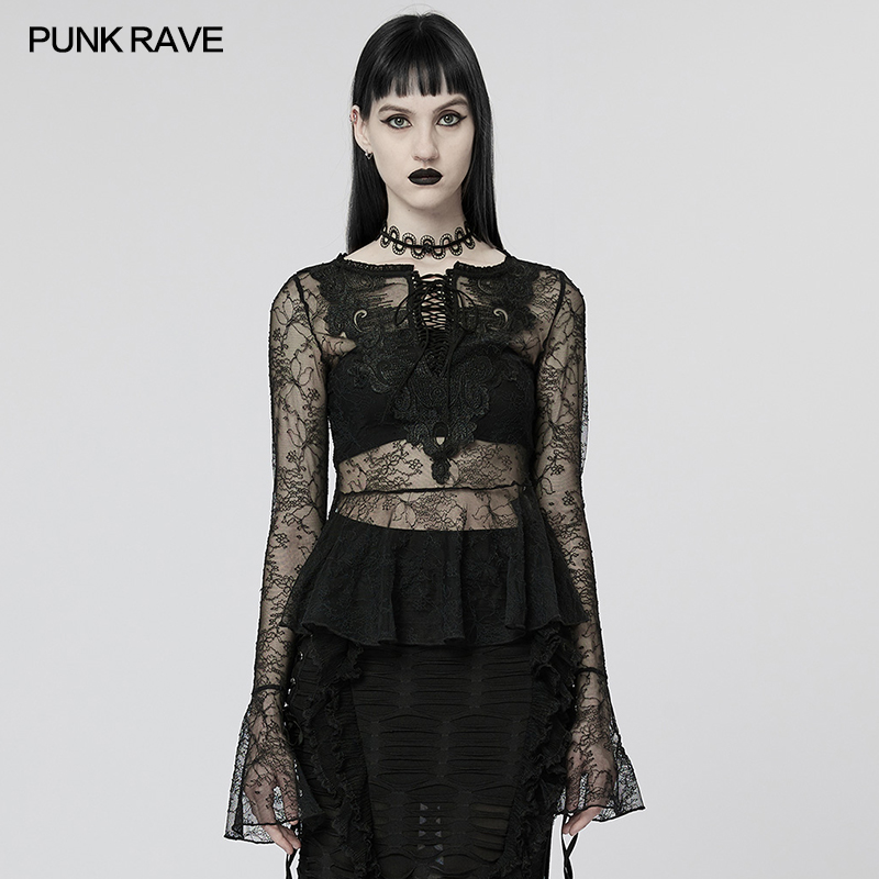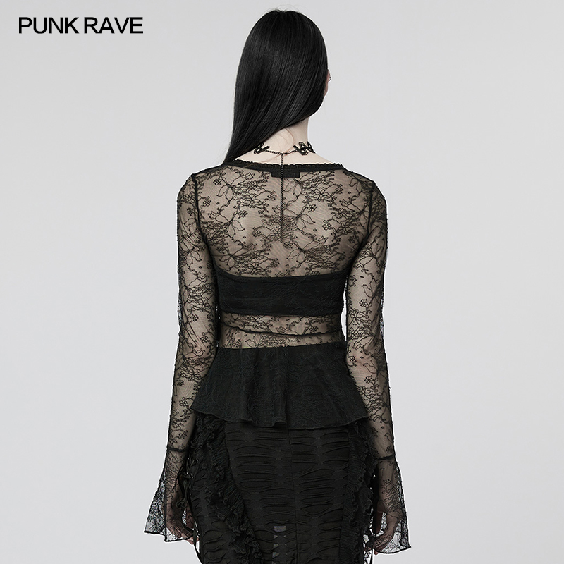 Gothic Single-Layer Light Lace Perspective T-Shirt WT-719TCF