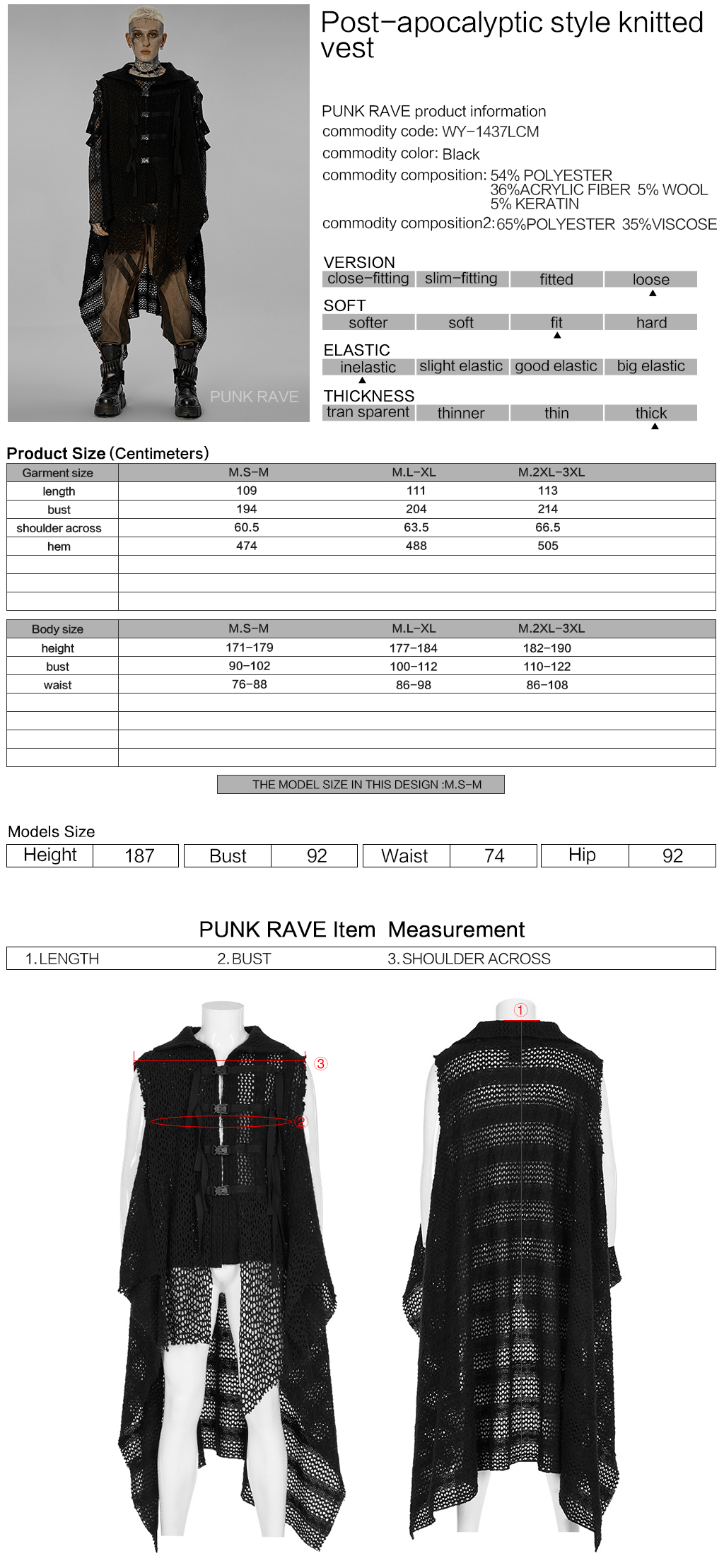 Men Wasted Earth Style Irregular Gauze Splicing Knitted Vest Black Sweater WY-1437ZCM