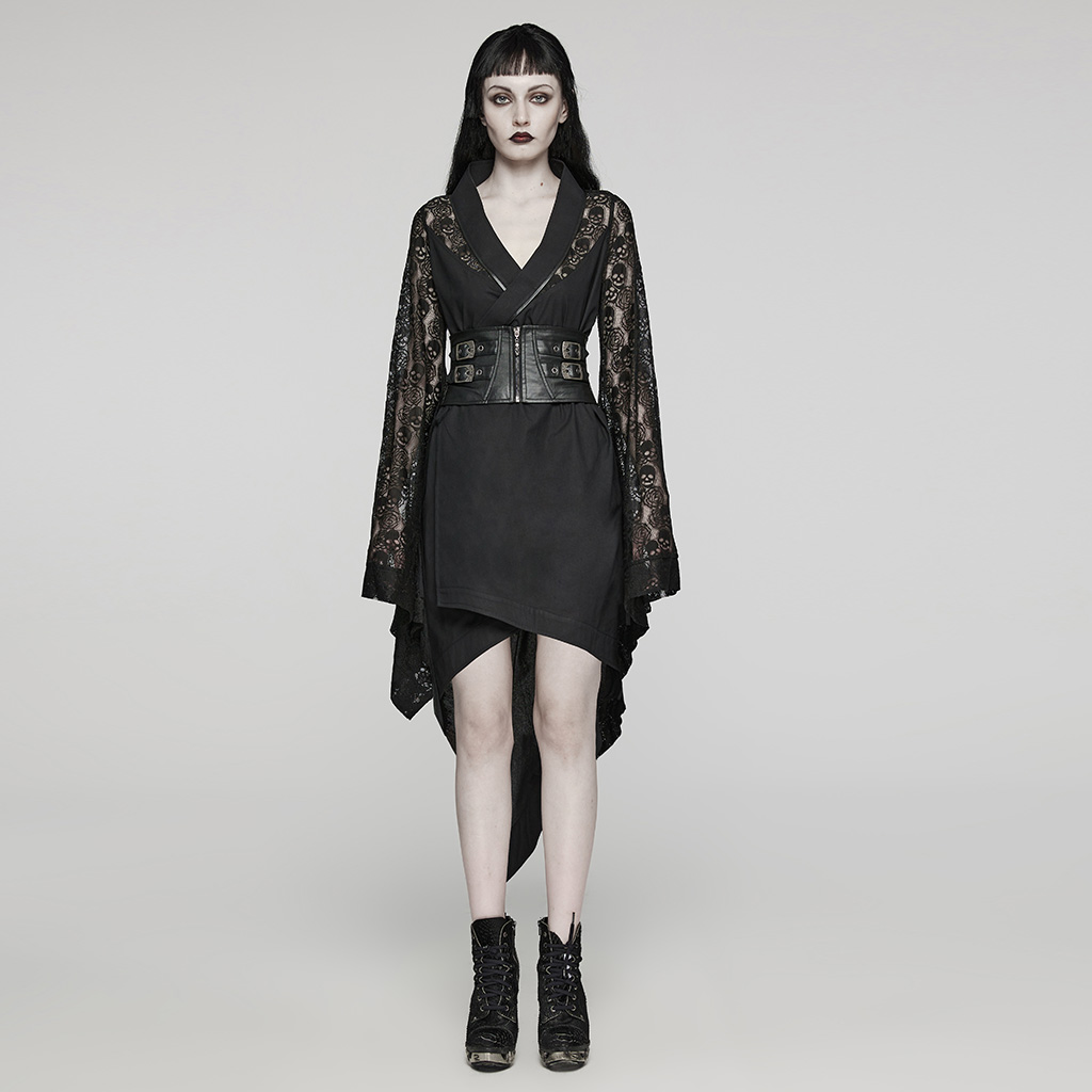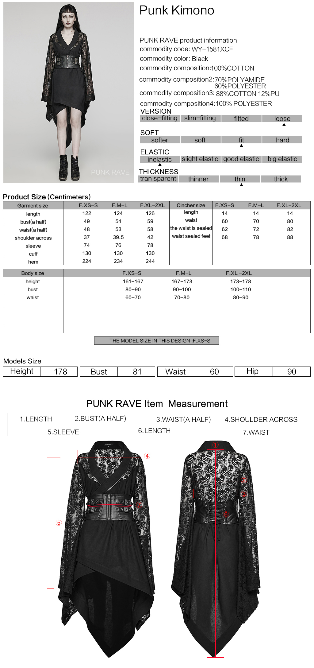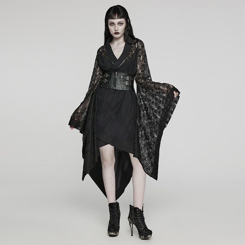 Punk Rave WY-1581XCF Irregular Hem Magnificent Collar Skull And Rose Pattern Lace And Inelastic Woven Fabric Punk Kimono