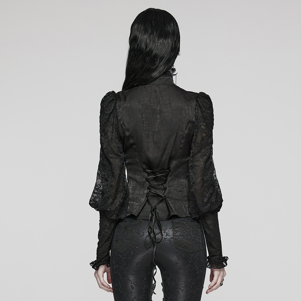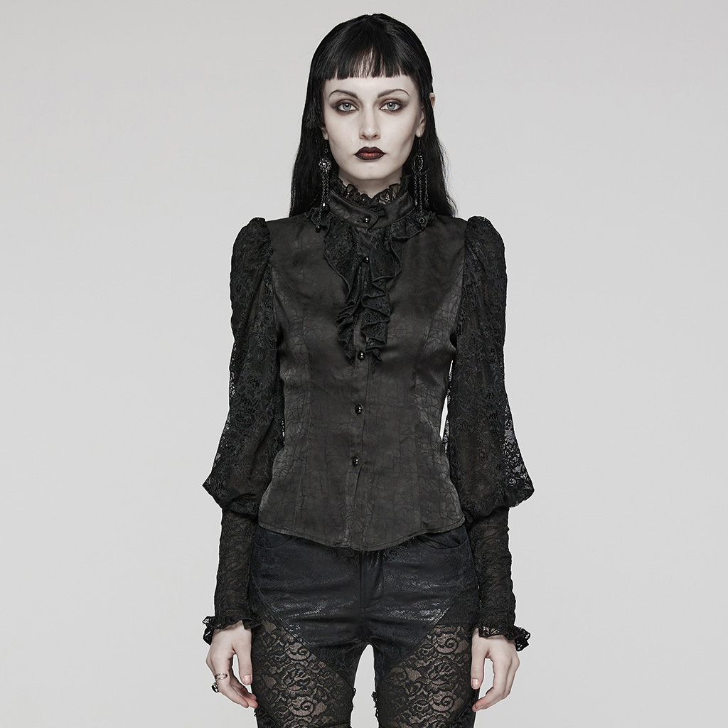 Punk Rave WY-1583CCF Lantern Sleeve Design Light Textured Woven Fabric And Lace Material Goth Gorgeous Shirt